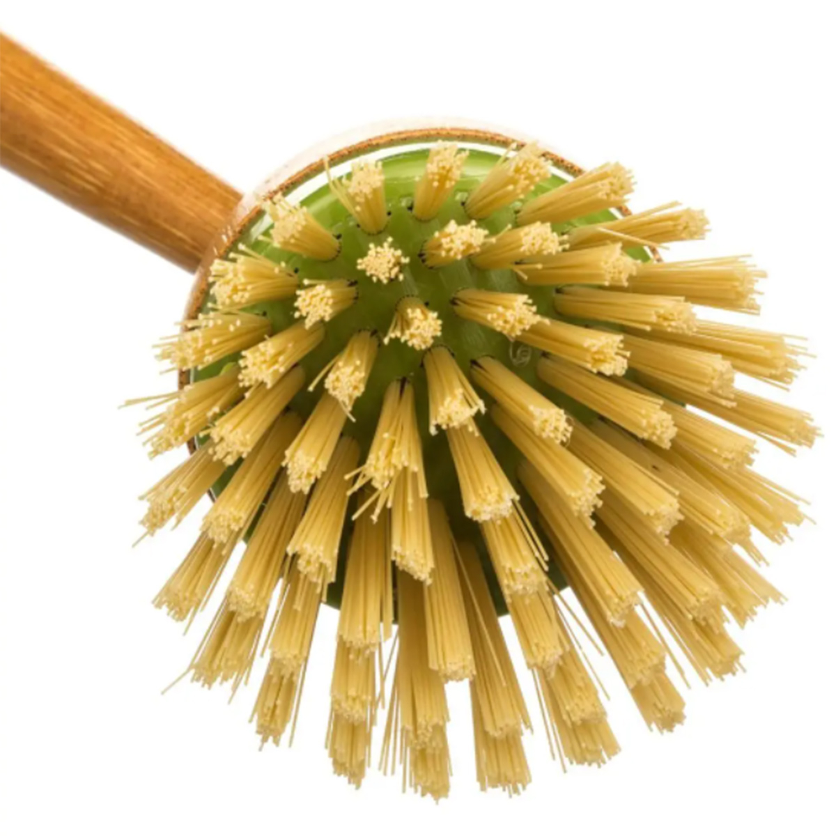 Μοντέρνα βούρτσα για τον καθαρισμό των πιάτων με σκληρές ίνες και κράτημα από bamboo υλικό. Διαθέτει κορδόνι για να κρέμεται.