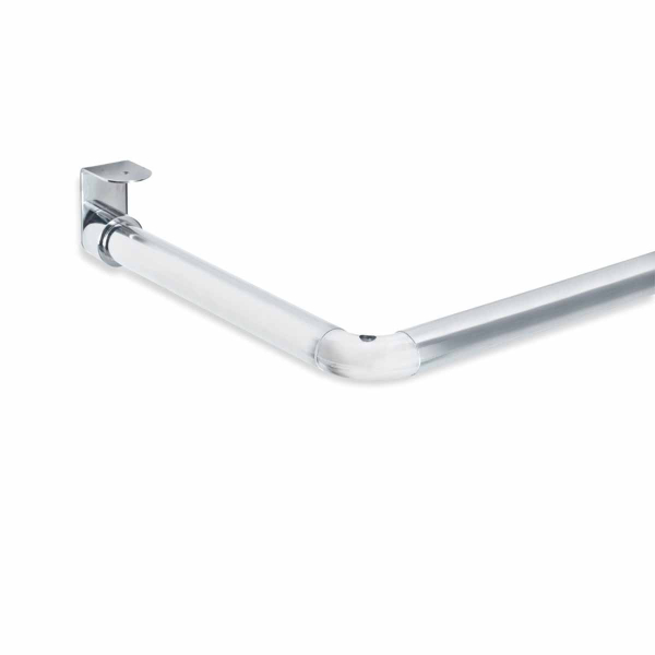 Γωνιακός βραχίονας μπάνιου από αλουμίνιο της εταιρείας Grekon, διαμέτρου Φ23mm, για τοποθέτηση στο ταβάνι με μεταλλικά τελειώματα ύψους 5cm. Μπορεί να κοπεί στην επιθυμητή διάσταση. Περιλαμβάνονται οι βίδες τοποθέτησης.
