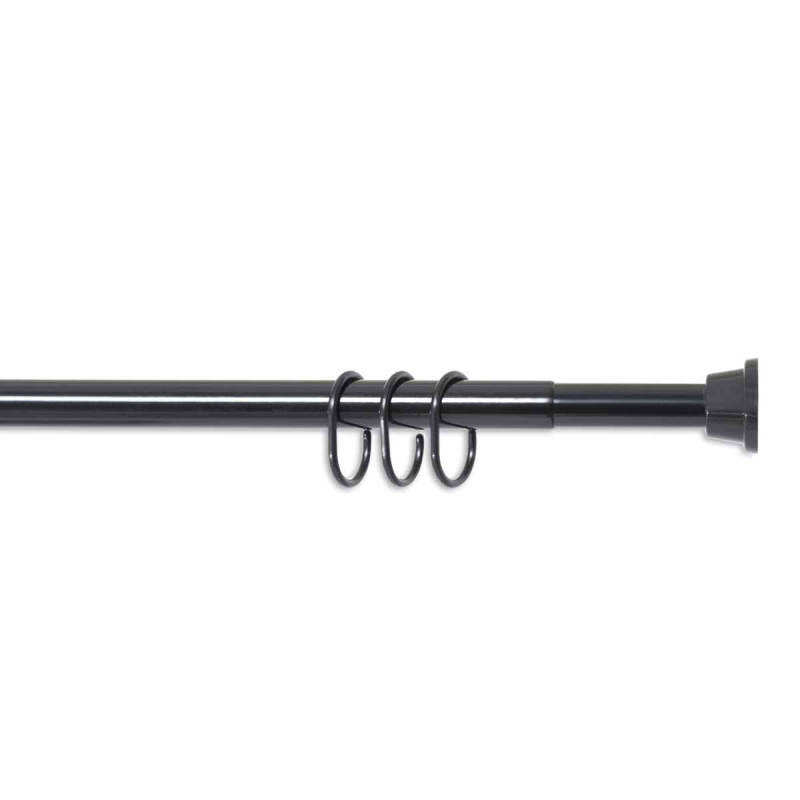 Τηλεσκοπικός βραχίονας μπάνιου από αλουμίνιο της εταιρείας Grekon, διαμέτρου Φ25mm. Στα πλάγια διαθέτει λάστιχο ώστε να μένει σταθερός στο πλακάκι, αλλά και στον τοίχο. Καλύπτει απόσταση από 120cm έως 220cm μεταξύ των τοίχων. **Δεν περιλαμβανόνται οι κρίκοι κρεμάσματος κουρτίνας που φαίνονται στη φωτογραφία.**
