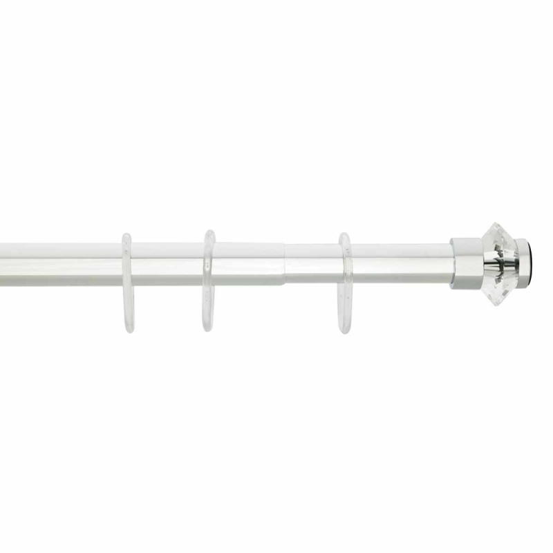 Τηλεσκοπικός βραχίονας μπάνιου από αλουμίνιο της εταιρείας Grekon, διαμέτρου Φ25mm. Το τελείωμα του είναι μεταλλικό με λεπτομέρεια κρυστάλλινου δίσκου. Στα πλάγια διαθέτει λάστιχο ώστε να μένει σταθερός στο πλακάκι, αλλά και στον τοίχο. Καλύπτει απόσταση από 160cm έως 260cm μεταξύ των τοίχων. **Δεν περιλαμβανόνται οι κρίκοι κρεμάσματος κουρτίνας που φαίνονται στη φωτογραφία.**