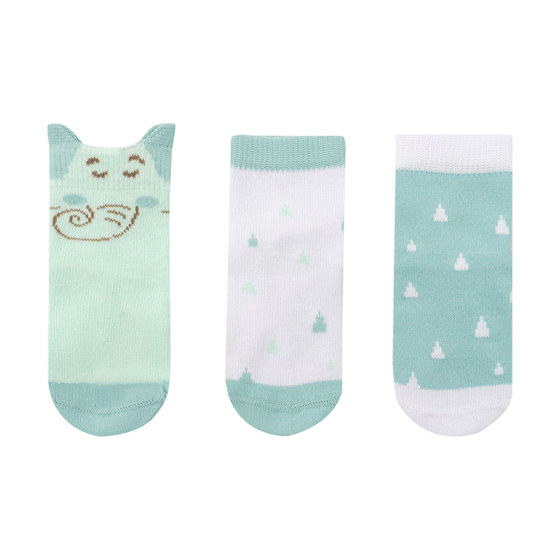 Σετ 3 ζεύγη καλτσάκια από την εταιρία Kikka Boo σε βεραμάν αποχρώσεις με 3D λεπτομέρειες. Κατασκευασμένα από 85% βαμβάκι-10% πολυαμίδιο-5% elastane που επιτρέπει στον αέρα να περνάει ώστε να μην ιδρώνουν τα ποδαράκια του μωρού σας. Είναι ελαστικά για να προσαρμόζονται στην ανάπτυξη του ποδιού και να μην εμποδίζουν τις κινήσεις του.
