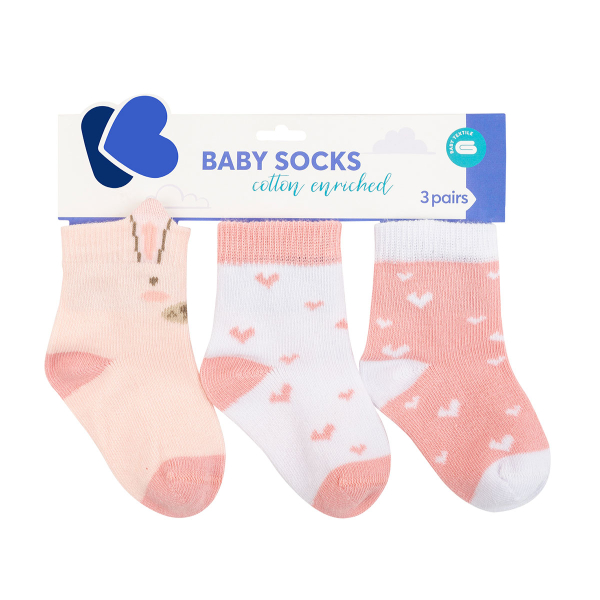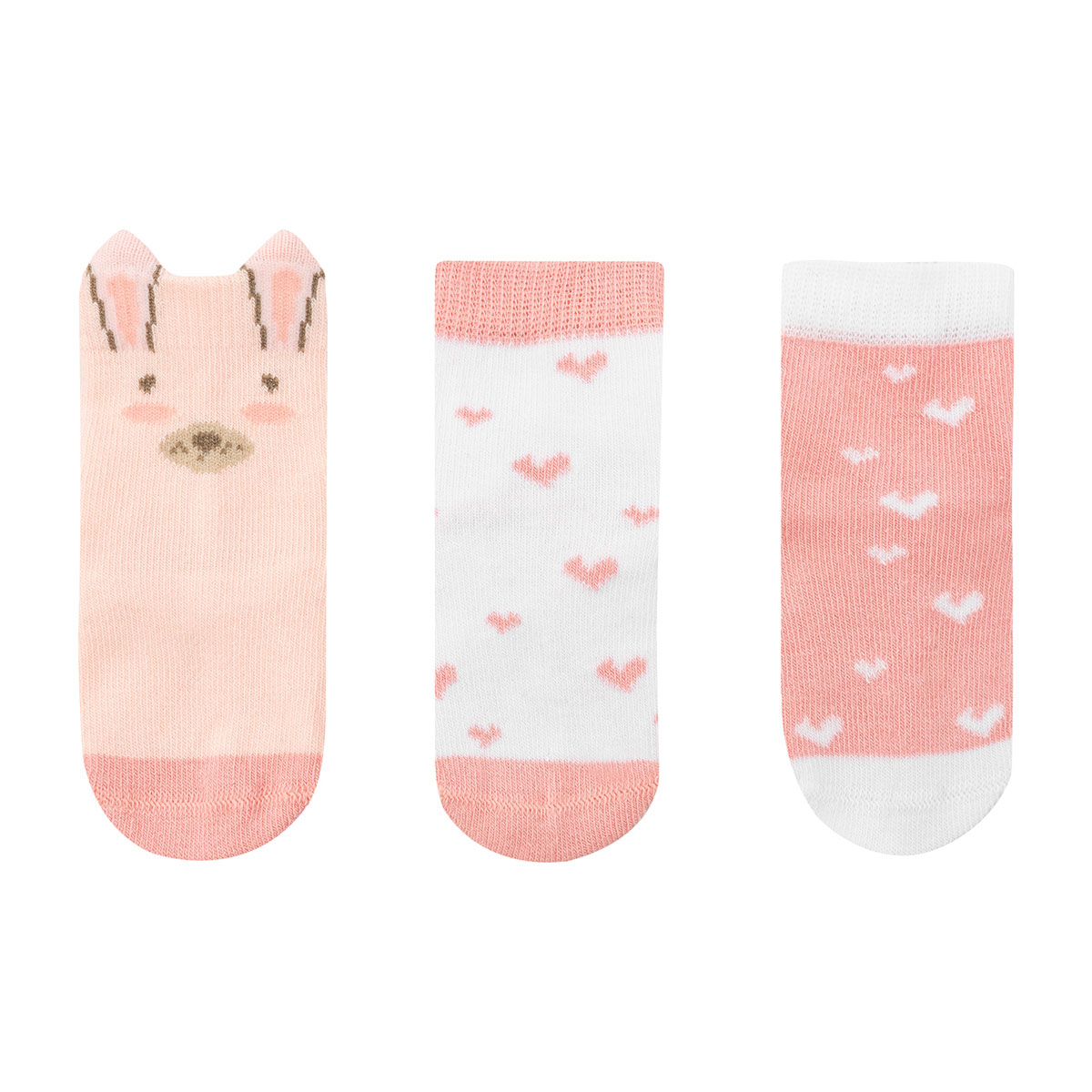 Σετ 3 ζεύγη καλτσάκια από την εταιρεία Kikka Boo σε σομόν αποχρώσεις με 3D λεπτομέρειες. Κατασκευασμένα από 85% βαμβάκι-10% πολυαμίδιο-5% elastane που επιτρέπει στον αέρα να περνάει ώστε να μην ιδρώνουν τα ποδαράκια του μωρού σας. Είναι ελαστικά για να προσαρμόζονται στην ανάπτυξη του ποδιού και να μην εμποδίζουν τις κινήσεις του.