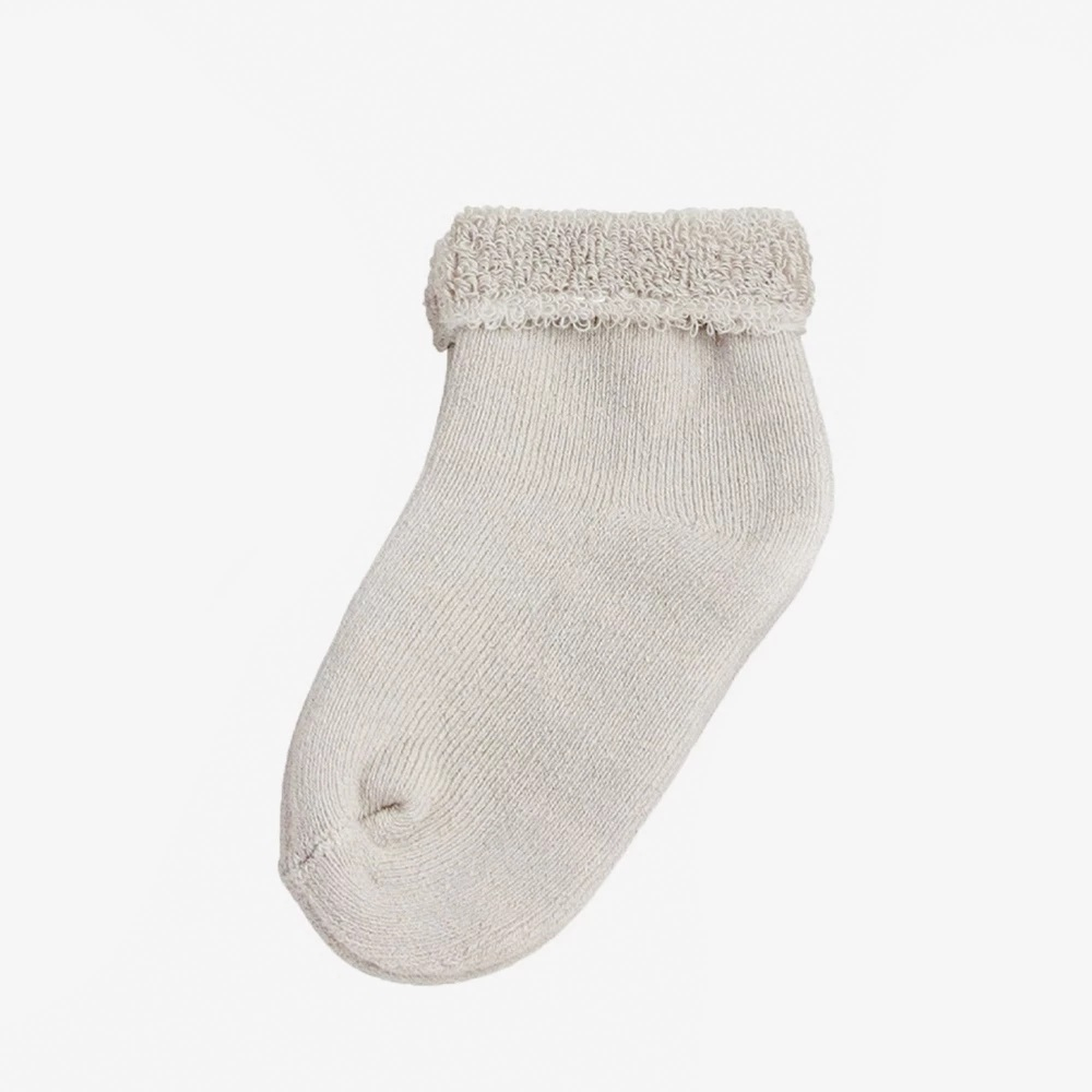 Σετ 3 ζεύγη καλτσάκια από την εταιρεία Trois Kilos Sept σε μπεζ-λευκό χρώμα. Κατασκευασμένα από 70% βαμβάκι-25% polyester-5% elastane, δεν πιέζουν τα ποδαράκια του μωρού σας ενώ τα κρατάνε ζεστά. Είναι ελαστικά για να προσαρμόζονται στην ανάπτυξη του ποδιού και να μην εμποδίζουν τις κινήσεις του.