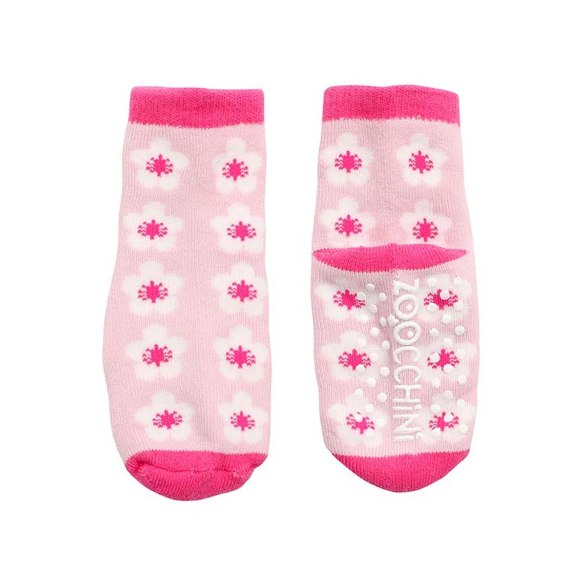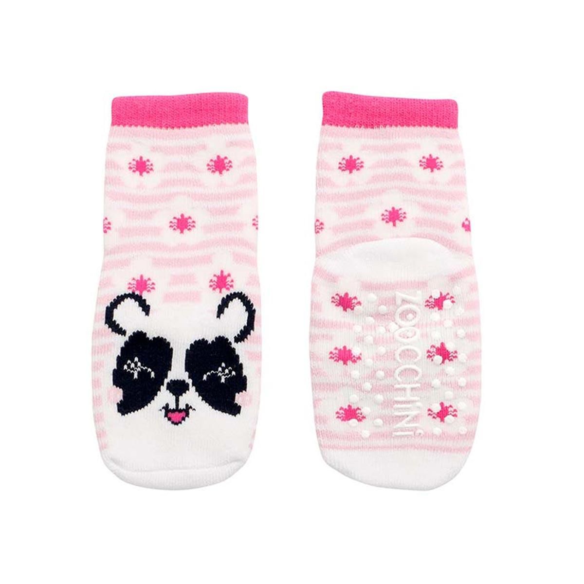 Σετ 3 ζεύγη παιδικές αντιολισθητικές κάλτσες από την εταιρεία Zoocchini. Το ένα ζεύγος έχει ροζ-λευκό χρώμα και σχέδιο πάντα, το άλλο ροζ φόντο, φούξια λεπτομέρειες και φλοράλ σχέδιο και το άλλο σχέδιο πάντα σε φούξια-ασπρόμαυρες αποχρώσεις. Η σύνθεσή τους αποτελείται από 79% βαμβάκι, 18% polyester, 3% spandex. Στο κάτω μέρος διαθέτουν αντιολισθητικά βεντουζάκια για να μην γλιστραέι το μικρό σας, ενώ είναι άνετα και πλούσια για να αναπτύσσεται το πόδι και να κινείται άνετα. Κατάλληλο για ηλικίες από 0+ μηνών έως 2 ετών.