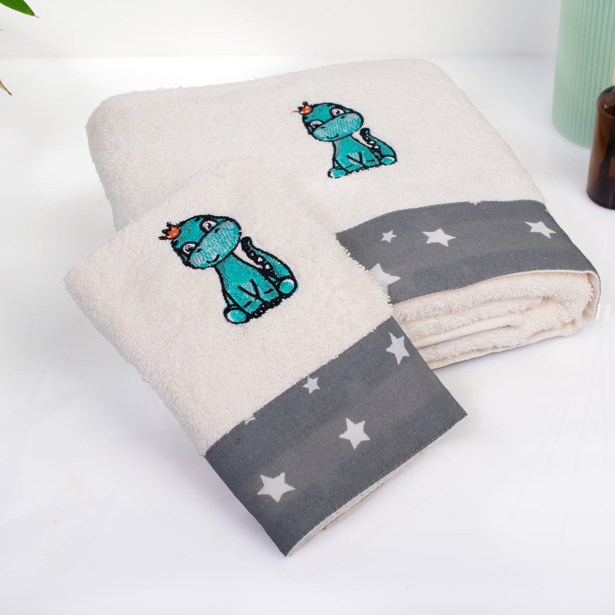 | DimcolΠαιδικές Πετσέτες (Σετ 2τμχ) Dimcol Dinosaur 181 Ecru-Grey