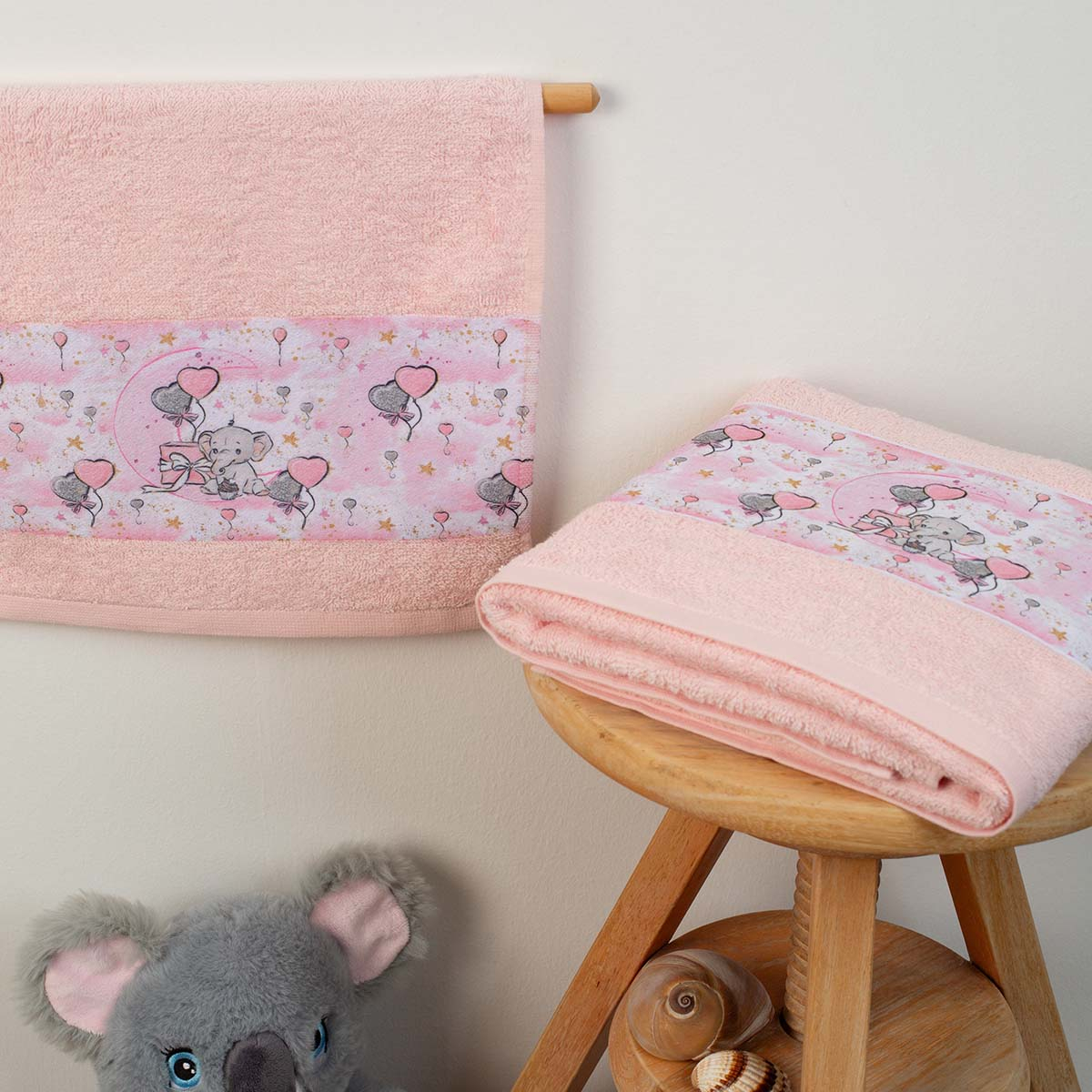 | DimcolΒρεφικές Πετσέτες (Σετ 2τμχ) Dimcol Dreaming Elephant 27 Ροζ