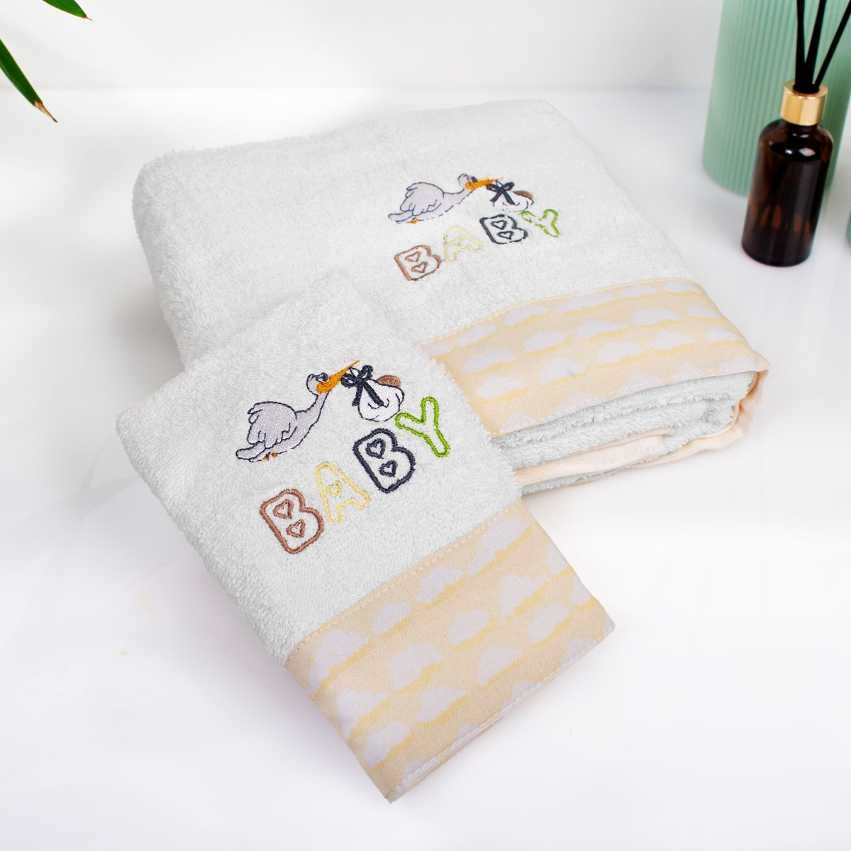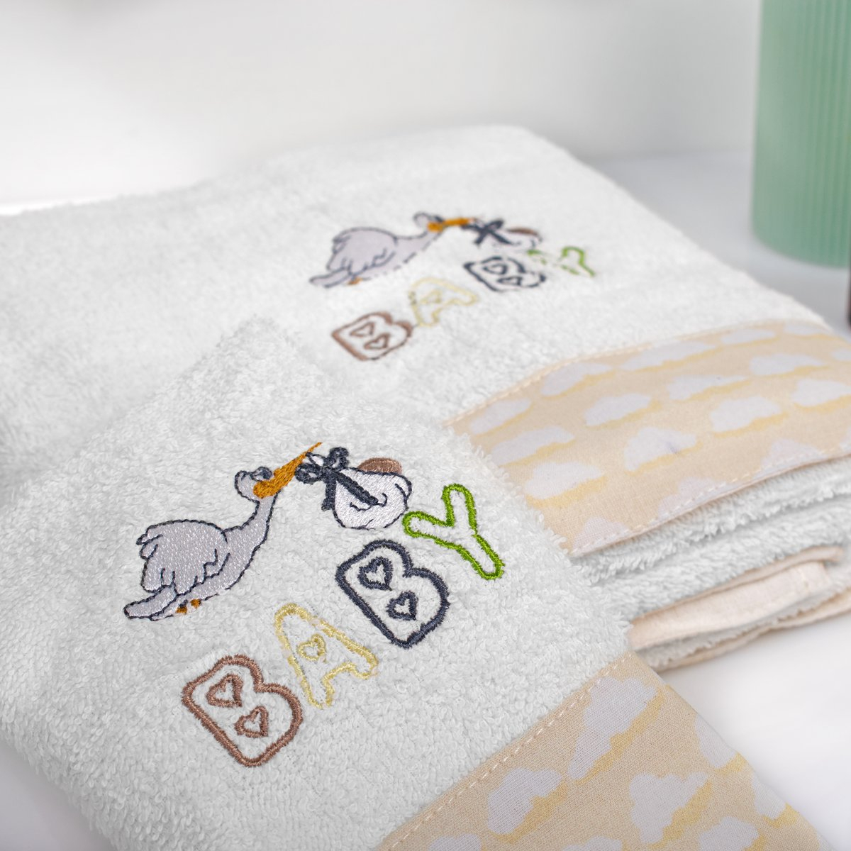 Παιδικές Πετσέτες (Σετ 2τμχ) Dimcol Stork 193 White-Yellow