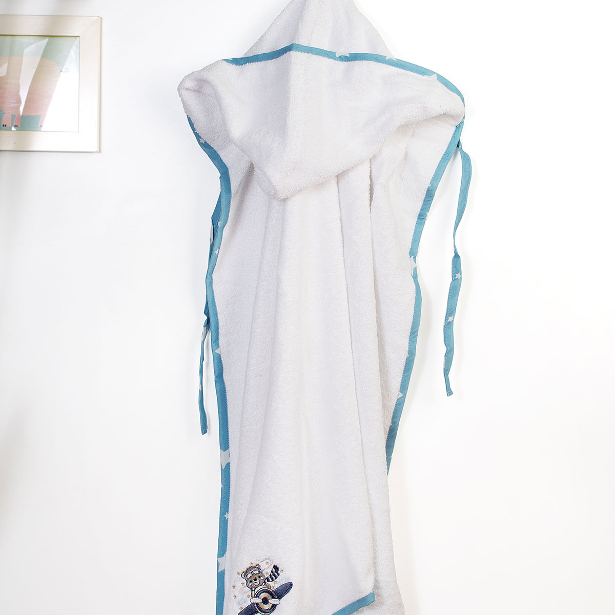 Βρεφική κάπα από την εταιρεία Dimcol, σε λευκό χρώμα με αρκουδάκι στο σχέδιο. Είναι κατασκευασμένη από 100% βαμβάκι βάρους 400γραμ./τ.μ. Έχει υφασμάτινο περιμετρικό ρέλι σε γαλάζιο χρώμα με αστεράκια σχέδιο. Ξεχωρίζει για την υψηλή της απορροφητικότητα και την εξαιρετική της ποιότητα. Ιδανική για μετά το μπάνιο του μωρού σας. Συνδυάστε τη με τα υπόλοιπα είδη της σειράς. Συσκευασία κουτί.