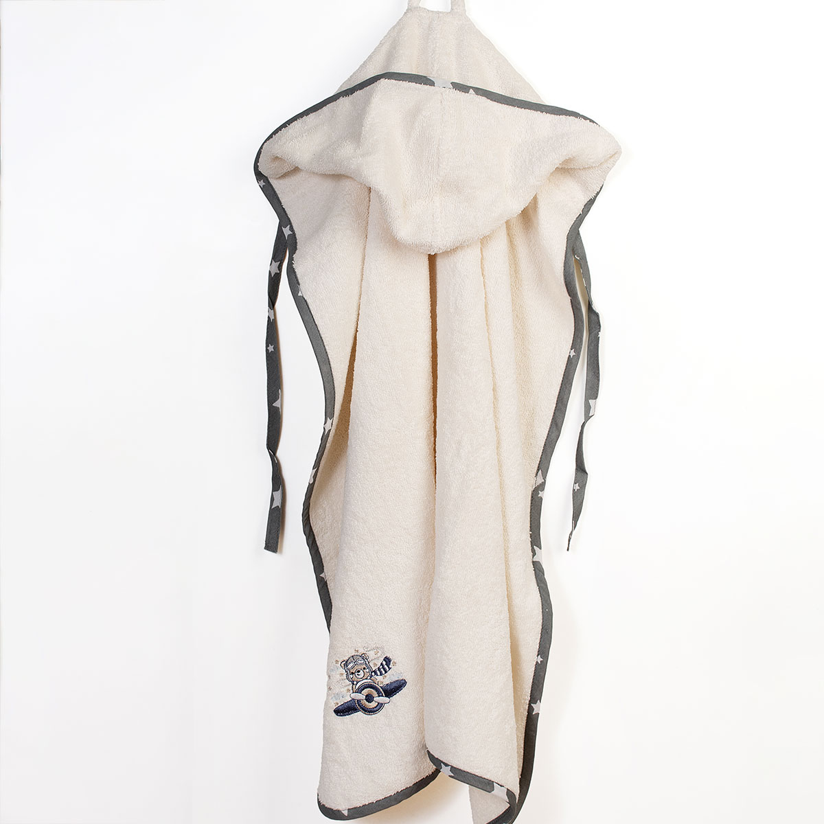 Βρεφική κάπα από την εταιρεία Dimcol, σε μπεζ χρώμα με αρκουδάκι στο σχέδιο. Είναι κατασκευασμένη από 100% βαμβάκι βάρους 400γραμ./τ.μ. Έχει υφασμάτινο περιμετρικό ρέλι σε γκρι χρώμα με αστεράκια σχέδιο. Ξεχωρίζει για την υψηλή της απορροφητικότητα και την εξαιρετική της ποιότητα. Ιδανική για μετά το μπάνιο του μωρού σας. Συνδυάστε τη με τα υπόλοιπα είδη της σειράς. Συσκευασία κουτί.