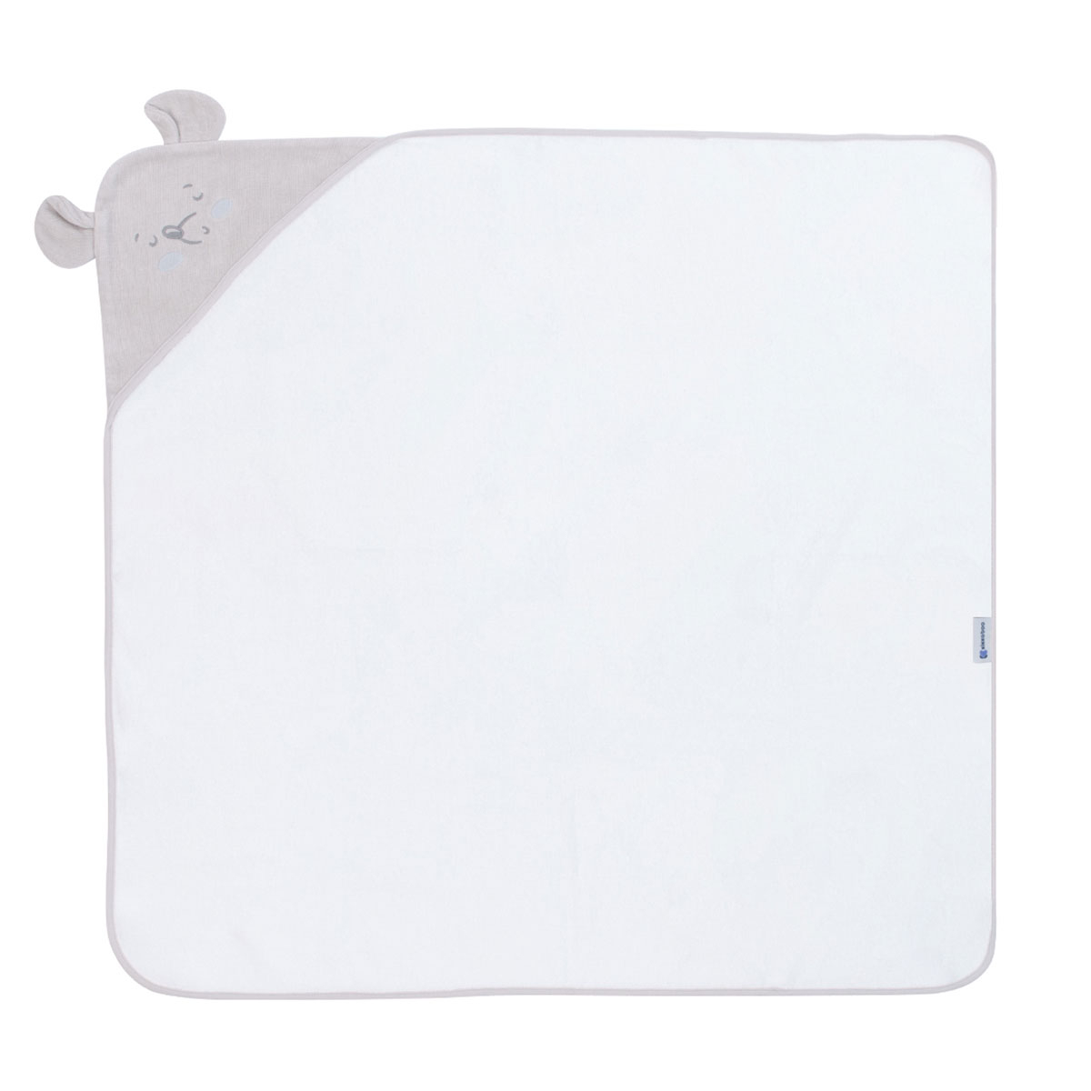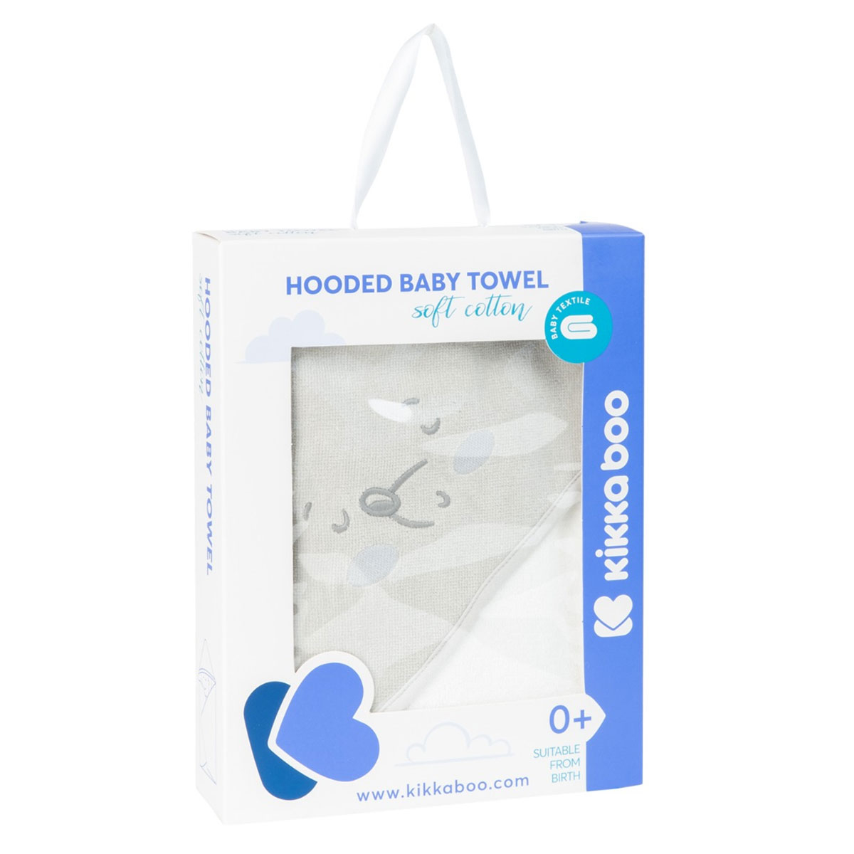 Βρεφική κάπα από την εταιρία Kikka Boof. Είναι κατασκευασμένη από 100% βαμβάκι με πιστοποίηση OEKO-TEX σε λευκό χρώμα και κουκούλα με αυτάκια σε μπεζ απόχρωση. Ιδανικό για να τυλίξετε με απαλότητα και να στεγνώσετε γρήγορα το μωρό σας μετά το μπάνιο. Συσκευασία κουτί.