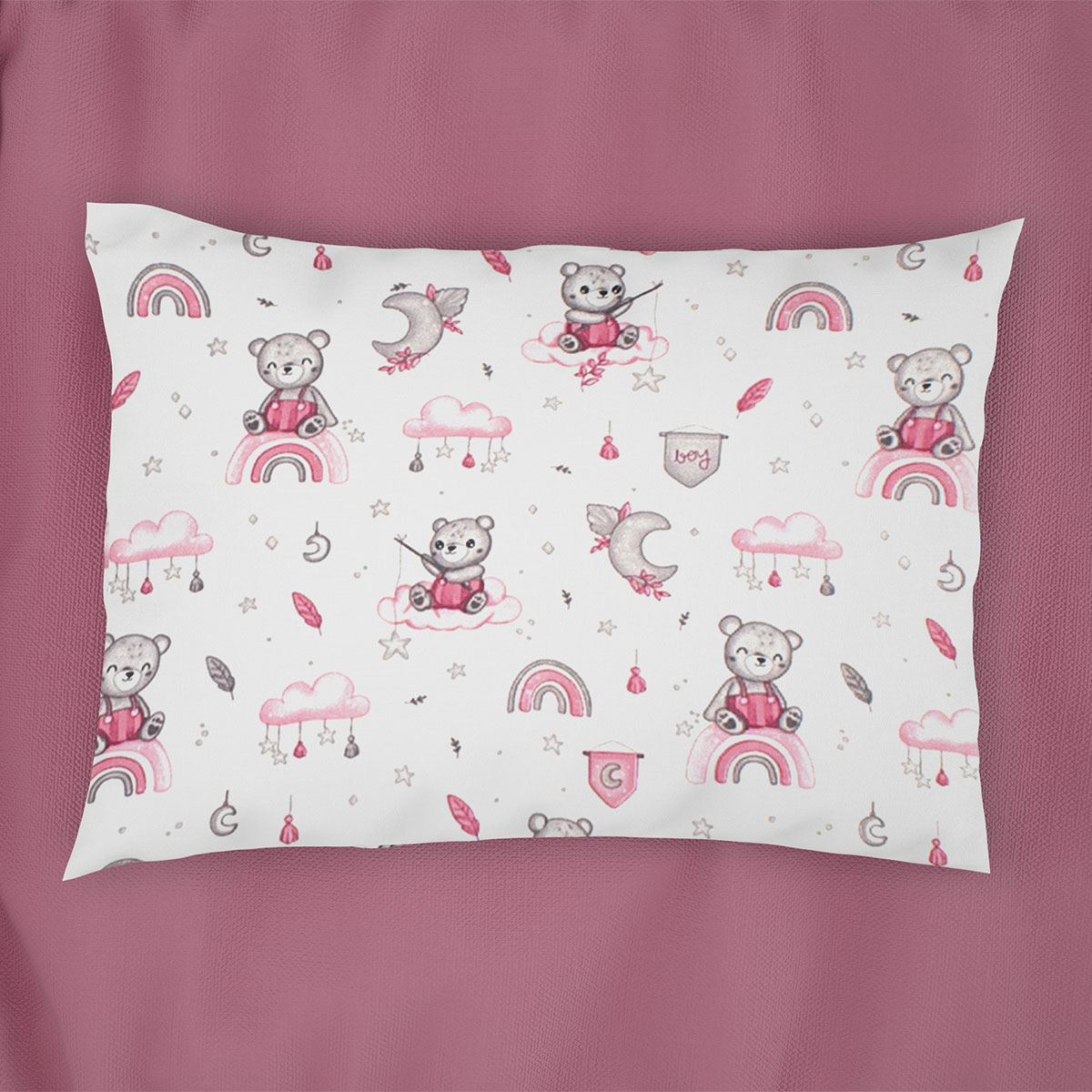 | DimcolΒρεφική Μαξιλαροθήκη (35x45) Dimcol Cloudy Bear 582 White - Pink