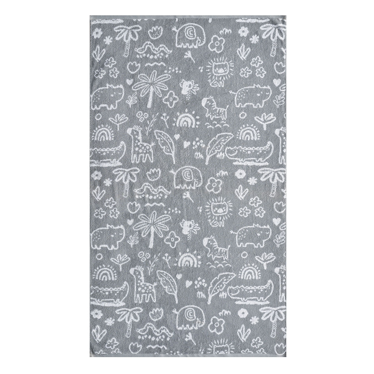 Βρεφική πετσέτα σώματος της εταιρείας Kentia για το μπάνιο του μωρού σας. Είναι γκρι και έχει σχέδιο ζωάκια σε λευκό χρώμα. Η σύνθεσή της είναι 100% βαμβάκι ζακάρ 450γραμ./τ.μ., που την καθιστά απαλή και εύκολη στο στέγνωμα.