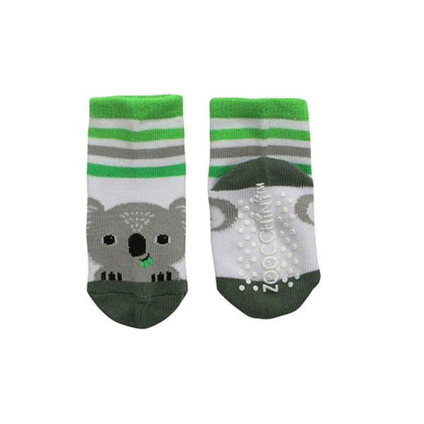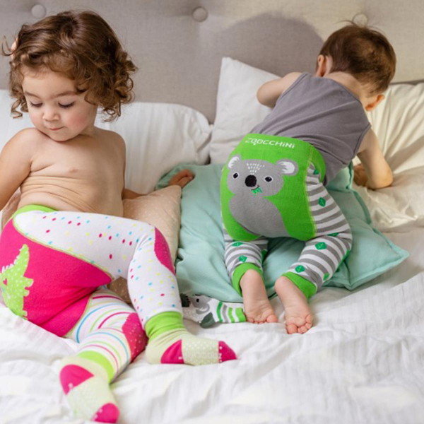 Βρεφικό κολάν και βρεφικά καλτσάκια σε πράσινες-γκρι αποχρώσεις και σχέδιο κοάλα από την εταιρία Zoocchini. Είναι κατασκευασμένα από βαμβάκι-πολυαμίδιο και spandex για μεγαλύτερη άνεση και ελαστικότητα. Το κολάν είναι ιδανικό για το μπουσούλημα του μικρού σας, καθώς είναι ειδικά σχεδιασμένο για να προστατεύει τα γονατάκια από μελανιές και χτυπήματα χάρη στα σχέδια σιλικόνης που διαθέτει. Τα συγκεκριμένα σχέδια δημιουργούν αντίσταση, συμβάλλουν στην εκγύμναση του σώματος και βοηθούν το μικρό σας να σπρώξει μπροστά χωρίς να γλιστράει. Το κολάν είναι αρκετά μαλακό, με ύφασμα που αναπνέει για να μην ερεθίζεται το δέρμα του μικρού σας. Η μέση είναι ελαστική, χωρίς κουμπιά ή ζώνες και στον αστράγαλο το κράτημα είναι ελαστικό. Το πίσω μέρος του κολάν είναι ευρύχωρο για να μπορεί να φορεθεί και με την πάνα. Το σετ διαθέτει επιπλέον και ένα ζευγάρι κάλτσες, που και αυτές διαθέτουν αντιολισθητικά βεντουζάκια στο κάτω μέρος για να περπατάει και να παίζει με ασφάλεια το μωράκι σας. Ιδανικό σετ που μπορεί να φορεθεί όλον τον χρόνο, ενώ θα εξασφαλίσουν άνεση και ασφάλεια για την μετάβαση του μωρού σας από το μπουσούλημα στο περπάτημα. Το κολάν απο 6 έως 12 μηνών είναι κατάλληλο για 6.5-10 κιλά, 66-76εκ. Ύψος, 38εκ. Μήκος από την μέση έως τον αστράγαλο και 17.5-30εκ. μέση. Από 12-18 μηνών είναι κατάλληλο για 10-14 κιλά, 73-83εκ. Ύψος, 43εκ. Μήκος από την μέση έως τον αστράγαλο και 18-33εκ. μέση.