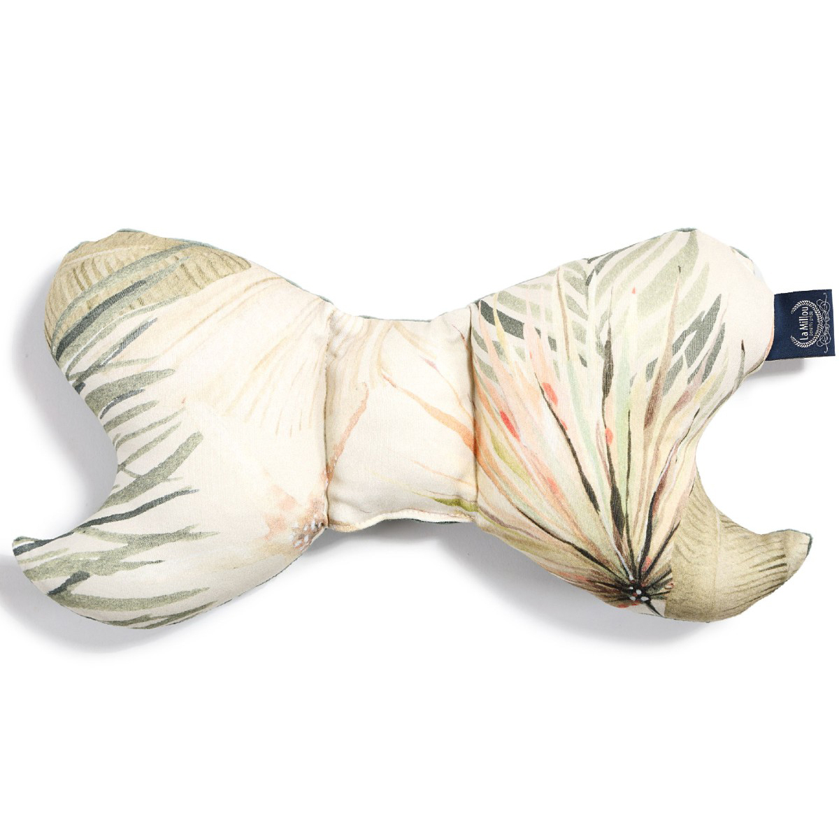 Βρεφικό μαξιλαράκι σε μπεζ χρώμα, με χακί λεπτομέρειες και τρόπικαλ σχέδιο της εταιρείας La Millou. Είναι σχεδιασμένο από φυσιοθεραπευτή και στηρίζει το κεφαλάκι του μωρού στο καρότσι, στο κάθισμα του αυτοκινήτου αλλά και όταν κοιμάται στο λίκνο ή την κούνια του. Είναι αντικραδασμικό για επιπλέον προστασία και άνεση. Το μπροστινό μέρος είναι ελαστικό, μαλακό jersey ύφασμα από 100% οργανικό βαμβάκι. Χαρίζει έναν ήρεμο και ασφαλή ύπνο στο μωρό όπου κι αν βρισκόσαστε. Όλα τα προϊόντα της εταιρείας La Millou είναι χειροποίητα. Συνδυάστε τα με τα υπόλοιπα είδη του ίδιου σχεδίου για ένα ολοκληρωμένο αποτέλεσμα.