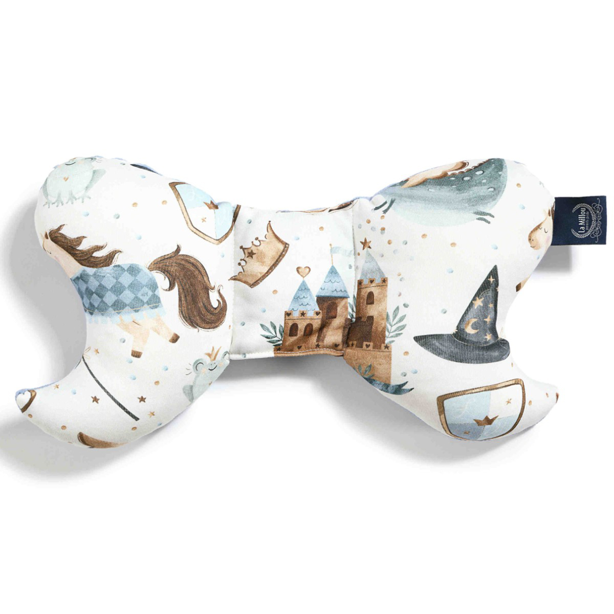 Βρεφικό μαξιλαράκι σε εκρού χρώμα, με γαλάζιες λεπτομέρειες και σχέδιο παιδικές φιγούρες της εταιρείας La Millou. Είναι σχεδιασμένο από φυσιοθεραπευτή και στηρίζει το κεφαλάκι του μωρού στο καρότσι, στο κάθισμα του αυτοκινήτου αλλά και όταν κοιμάται στο λίκνο ή την κούνια του. Είναι αντικραδασμικό για επιπλέον προστασία και άνεση. Το μπροστινό μέρος είναι ελαστικό, μαλακό jersey ύφασμα από 100% οργανικό βαμβάκι. Χαρίζει έναν ήρεμο και ασφαλή ύπνο στο μωρό όπου κι αν βρισκόσαστε. Όλα τα προϊόντα της εταιρείας La Millou είναι χειροποίητα. Συνδυάστε τα με τα υπόλοιπα είδη του ίδιου σχεδίου για ένα ολοκληρωμένο αποτέλεσμα.