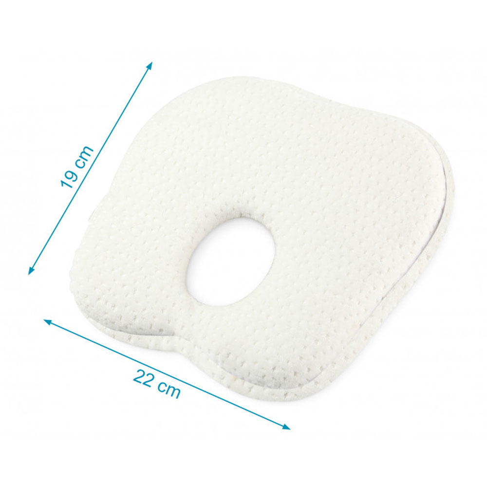 Βρεφικό μαξιλαράκι για το προσκέφαλο του μωρού από την εταιρεία Kiokids σε λευκό χρώμα. Το εξωτερικό του ύφασμα είναι από 100% βαμβάκι ενώ η γέμιση είναι από 100% πολυεστερική βάτα. Είναι ιδανικό για την ανακούφιση της πίεσης στο πίσω μέρος του κρανίου και υποστηρίζει τον λαιμό του μωρού, κρατώντας το ευθυγραμμισμένο. Μπορεί να χρησιμοποιηθεί στο κρεβάτι αλλά και στο ρηλάξ, στο καθισματάκι αυτοκινήτου, κούνια, καροτσάκι και χαλάκι δραστηριοτήτων. Προτείνεται από παιδίατρους και ειδικούς υγείας για να αποτρέπεται η πλαγιοκεφαλία.