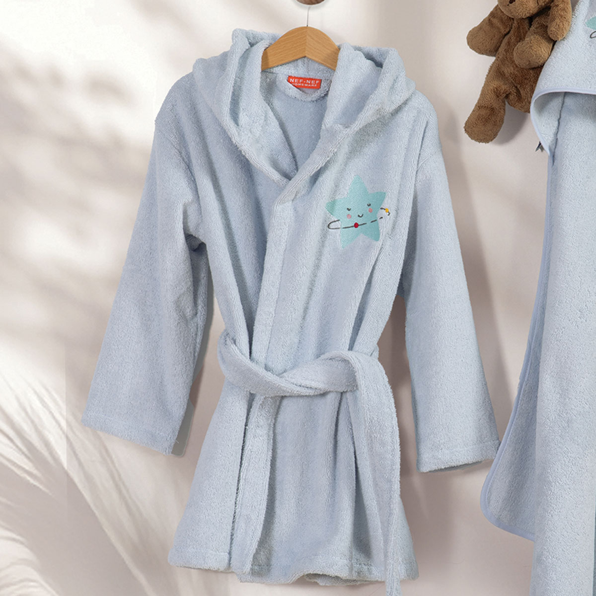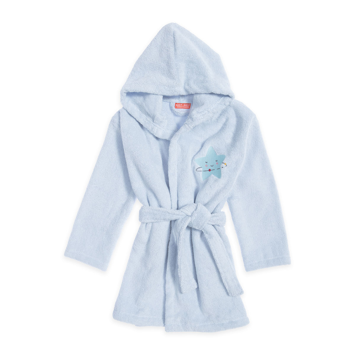 Βρεφικό μπουρνούζι από την εταιρεία Nef-Nef σε γαλάζιο χρώμα με κεντητές λεπτομέρειες. Διαθέτει κουκούλα, τσέπες και ζώνη. Η ποιότητά του από 100% βαμβάκι και το βάρος του 420gsm, προσφέρει εξαιρετική απαλότητα και απορροφητικότητα. Η εταιρεία Nef-Nef διαθέτει πιστοποίηση Oeko-Tex, που εγγυάται ότι τα προϊόντα της είναι απαλλαγμένα από επιβλαβείς χημικές ουσίες.