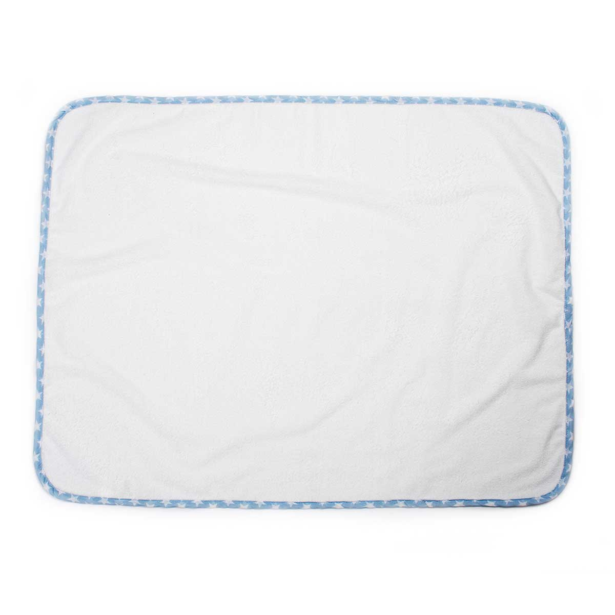 Σελτεδάκι από την εταιρεία Dimcol σε λευκό χρώμα με περιμετρικό γαλάζιο ρέλι με αστεράκια. Είναι κατασκευασμένο από 100% βαμβακερό Terry ύφασμα στο πάνω μέρος. Έχει αδιάβροχη επένδυση TPU στην κάτω πλευρά για προστασία οποιασδήποτε επιφάνειας από υγρασία. Είναι αντιαλλεργικό και κατάλληλο για τις πιο ευαίσθητες επιδερμίδες. Έχει πιστοποίηση Oeko-Tex Standard 100.