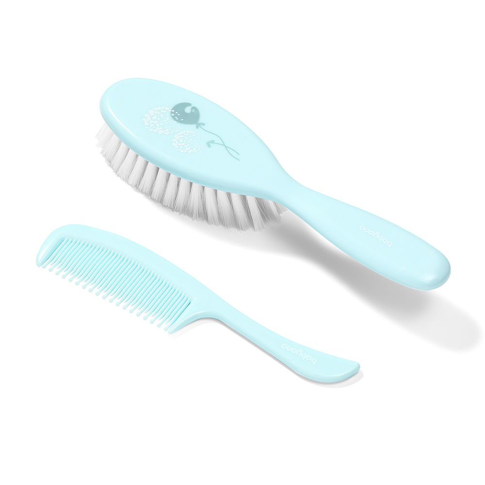 Σετ περιποίησης μαλλιών της εταιρείας BabyOno σε γαλάζιο χρώμα με μοντέρνο σχέδιο. Το σετ αποτελείται από μία βούρτσα και μία χτένα, κατασκευασμένες από πλαστικό υλικό. Οι τρίχες της βούρτσας είναι πολύ λεπτές, με πάχος μόλις 0,1mm και είναι ιδανικές για να βουρτσίσετε τις λεπτά μαλλάκια του μωρού. Κάνει μοναδικό μασάζ στο τριχωτό της κεφαλής. Έχει αντιολισθητική λαβή και είναι αντιστατική. Η χτένα έχει στρογγυλεμένες άκρες και προστατεύει το τριχωτό της κεφαλής από τυχόν ερεθισμούς. Κατάλληλο από την πρώτη μέρα της γέννησης.