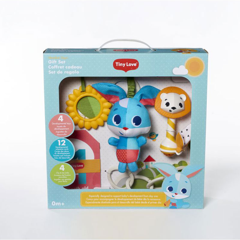 Βρεφικό σετ δώρου της εταιρείας Tiny Love σε πολύχρωμες αποχρώσεις και σχέδιο ζωάκια. Θα προσφέρει στο μωρό διασκέδαση και θα συμβάλλει στην ανάπτυξη των αισθήσεων και των δεξιοτήτων του. Τα κρεμαστά παιχνίδια είναι κατάλληλα για να τα κρεμάσετε στο καρότσι, το παρκοκρέβατο ή όπου αλλού επιθυμείτε. Το μασητικό θα βοηθήσει στην ανακούφιση του πόνου από τους πόνους της οδοντοφυΐας. Οι 12 κάρτες με συμβουλές και tips σχετικά με την ανάπτυξη και την αντίληψη του μωρού.