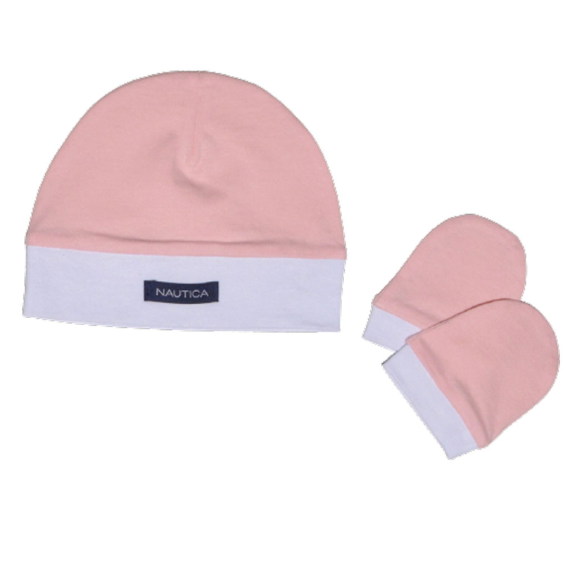 Βρεφικό σετ για νεογέννητο από την εταιρεία Nautica. Είναι μονόχρωμα σε ροζ χρώμα με λευκή λεπτομέρεια. Το ύφασμά τους είναι Jersey από 100% βαμβάκι πενιέ με πιστοποίηση Oekotex που εγγυάται ότι τα υφάσματα δεν έχουν επιβλαβείς ουσίες. Το σετ αποτελείται από βρεφικά γαντάκια και σκουφάκι κατάλληλα για βρέφη από 0 έως 1 μηνών. Σε συσκευασία σακούλα.