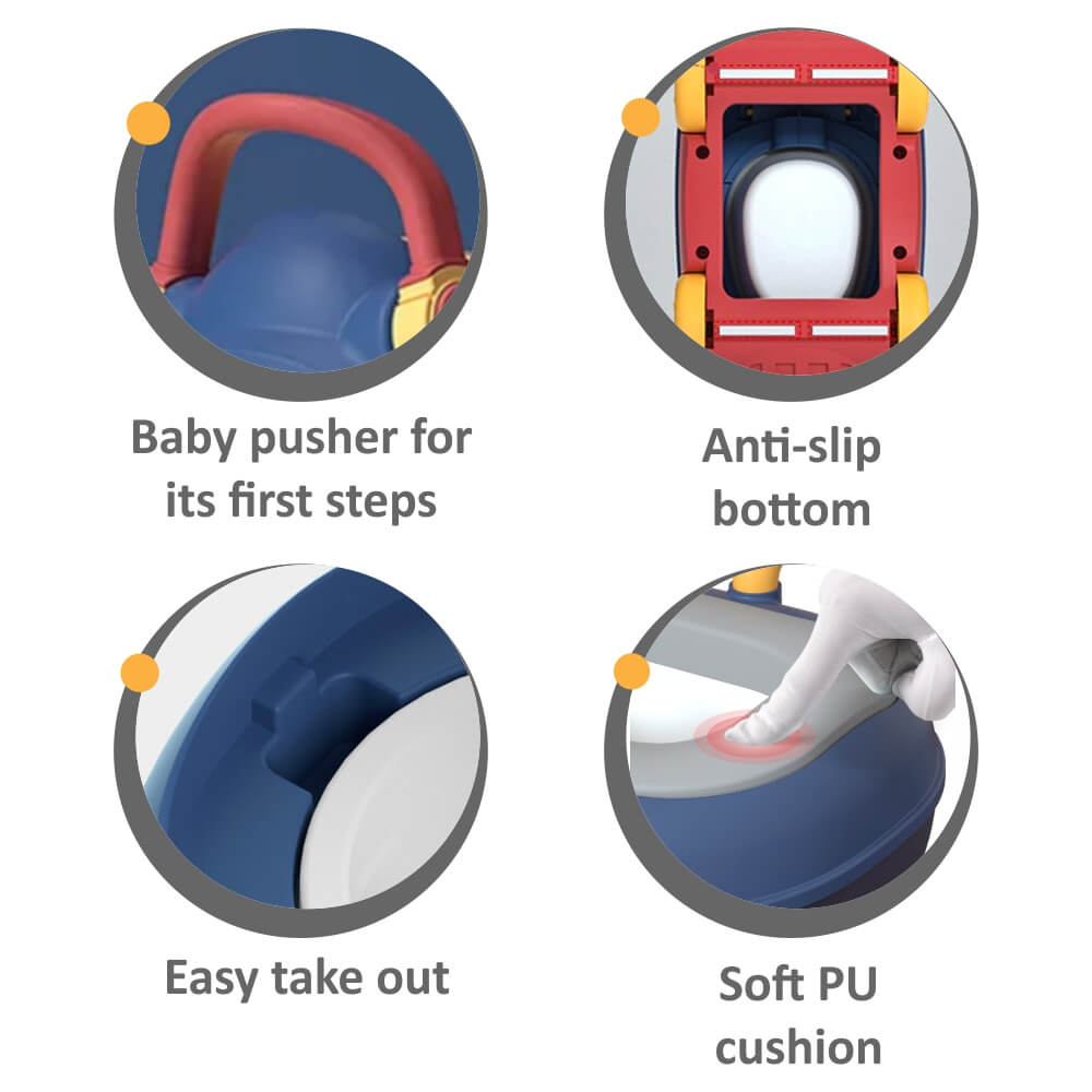Παιδικό γιογιό από την εταιρεία Bebe Stars σε μπλε χρώμα με κίτρινες-κόκκινες λεπτομέρειες και σχήμα αυτοκινήτου. Βοηθάει στην εκπαίδευση του παιδιού σας για την μετάβαση από την πάνα, στη χρήση της τουαλέτας με ένα μοναδικό και διασκεδαστικό τρόπο. Το σχέδιο και τα χρώματα του προκαλεί στα παιδιά περιέργεια και τους δίνει κίνητρο για να μάθουν να χρησιμοποιούν την τουαλέτα. Ο εργονομικός σχεδιασμός του προσφέρει υψηλή προστασία ενώ η αντιολισθητική του βάση το κρατάει σταθερό στην θέση του. Διαθέτει μαλακό μαξιλαράκι με αδιάβροχη επένδυση PU που προσφέρει άνεση και προστασία από λεκέδες. Το δοχείο αφαιρείται για να το καθαρίσετε και έχει καπάκι για να το κλείνετε και να το αποθηκεύετε. Έχει λαβή, την οποία μπορεί να χρησιμοποιήσει το παιδί σας ως οδηγό για τα πρώτα του βήματα. Κατασκευασμένο από ασφαλή, μη τοξικά υλικά και σύμφωνο με τον Ευρωπαϊκό Κανονισμό EN71. Κατάλληλο για παιδιά 12+ μηνών.