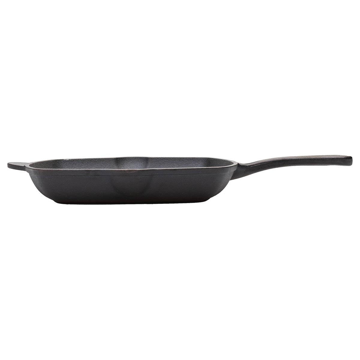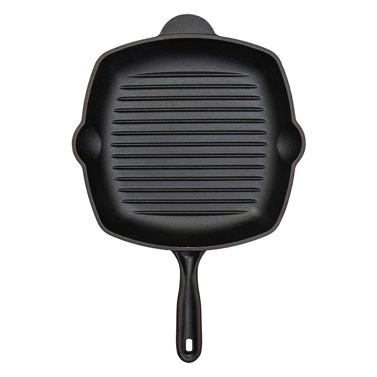 Γκριλιέρα από μαντέμι 28x28εκ. σε μαύρο χρώμα της εταιρείας εstia. Είναι κατασκευασμένη από 100% υψηλής ποιότητας χυτοσίδηρο με φυσικές αντικολλητικές ιδιότητες. Θερμαίνεται ομοιόμορφα και διατηρεί την θερμοκρασία για αρκετό διάστημα, εξοικονομώντας ενέργεια και βοηθώντας στο μαγείρεμα σε χαμηλή θερμοκρασία. Διαθέτει τριπλή αντικολλητική επίστρωση και εργονομική λαβή, για ασφαλές και γρήγορο μαγείρεμα. Είναι ιδανική και για απευθείας σερβίρισμα του γεύματός σας, χωρίς την χρήση άλλου σκεύους. Κατάλληλη για κάθε τύπο εστίας, τζάκι, μπάρμπεκιου και φούρνο. Συνδυάστε την με τα υπόλοιπα είδη της ίδιας σειράς για ένα ολοκληρωμένο σετ. Δεν επιτρέπεται πλύσιμο στο πλυντήριο πιάτων. Για τον καθαρισμό δεν είναι απαραίτητη η χρήση απορρυπαντικού, ξεπλύνετε το σκεύος με ζεστό νερό και τρίψτε καλά με μία βούρτσα ή την ειδική αλυσίδα καθαρισμού. Μετά τον καθαρισμό είναι σημαντικό να στεγνώσετε καλά το σκεύος με ένα στεγνό πανί. Αλείψτε το σκεύος με φυτικό ή ζωικό λάδι μετά το καθάρισμα και πριν το μαγείρεμα. *Για τη σωστή συντήρηση και φροντίδα του σκεύους συμβουλευτείτε το εγχειρίδιο χρήσης.*