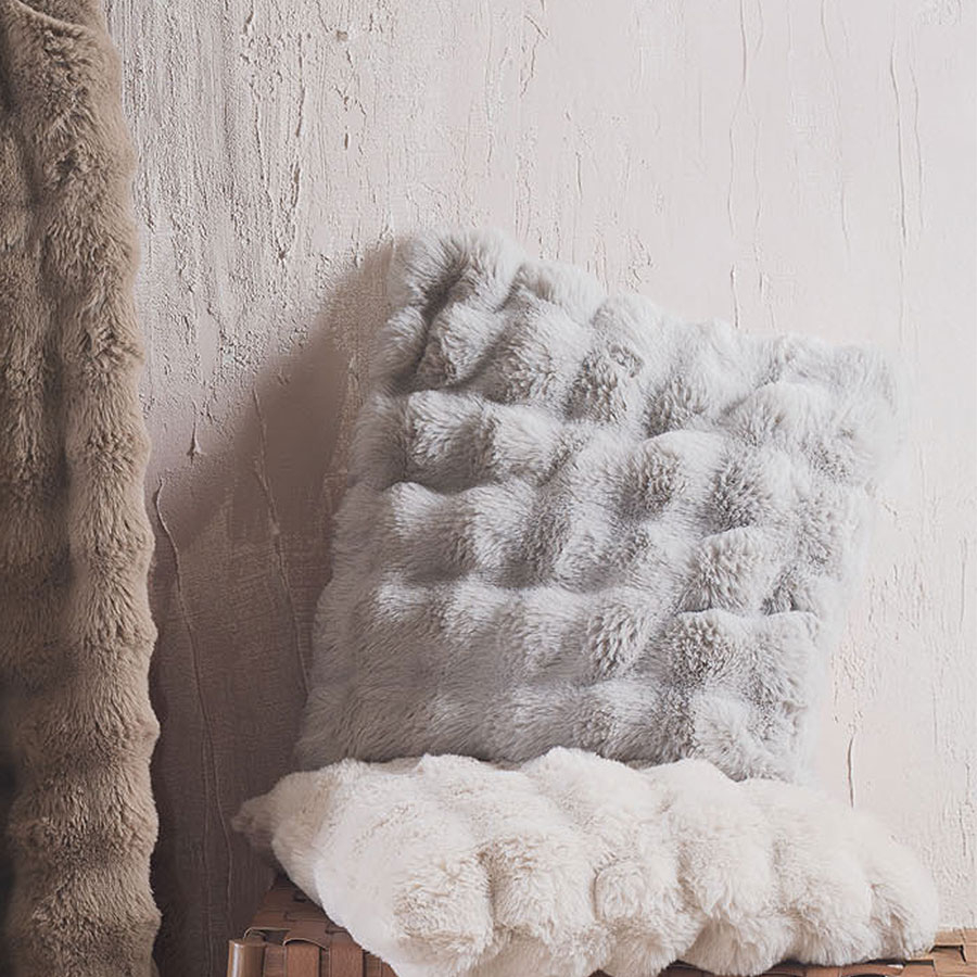 Γούνινη διακοσμητική μαξιλαροθήκη σε γκρι χρώμα με ανάγλυφο σχέδιο από την εταιρεία Rythmos. Είναι κατασκευασμένη από οικολογική γούνα 100% polyester. Ιδανική για να προσθέσει στυλ στον χώρο σας. Συνδυάστε τη με τα υπόλοιπα είδη του ίδιου σχεδίου για ένα ολοκληρωμένο αποτέλεσμα