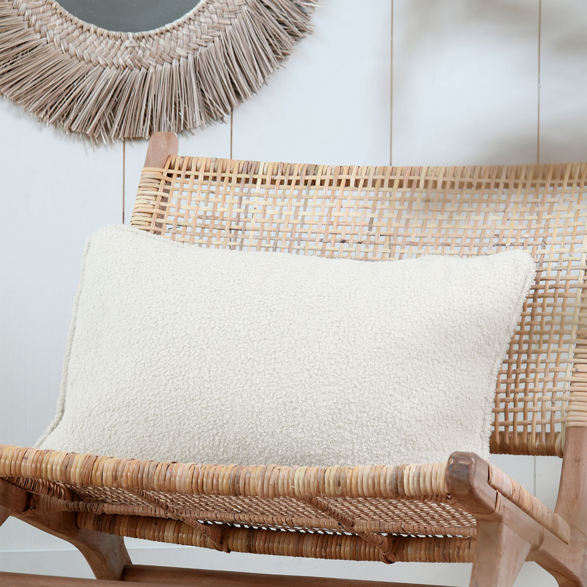 Διακοσμητικό μαξιλάρι σε εκρού χρώμα. Είναι γούνινο με μπουκλέ ύφασμα, κατασκευασμένο από 100% polyester και έχει γέμιση από πολυεστερική βάτα. Ανανεώστε εύκολα οποιονδήποτε χώρο του σπιτιού σας, δίνοντας μια φρέσκια και ανάλαφρη διάθεση.