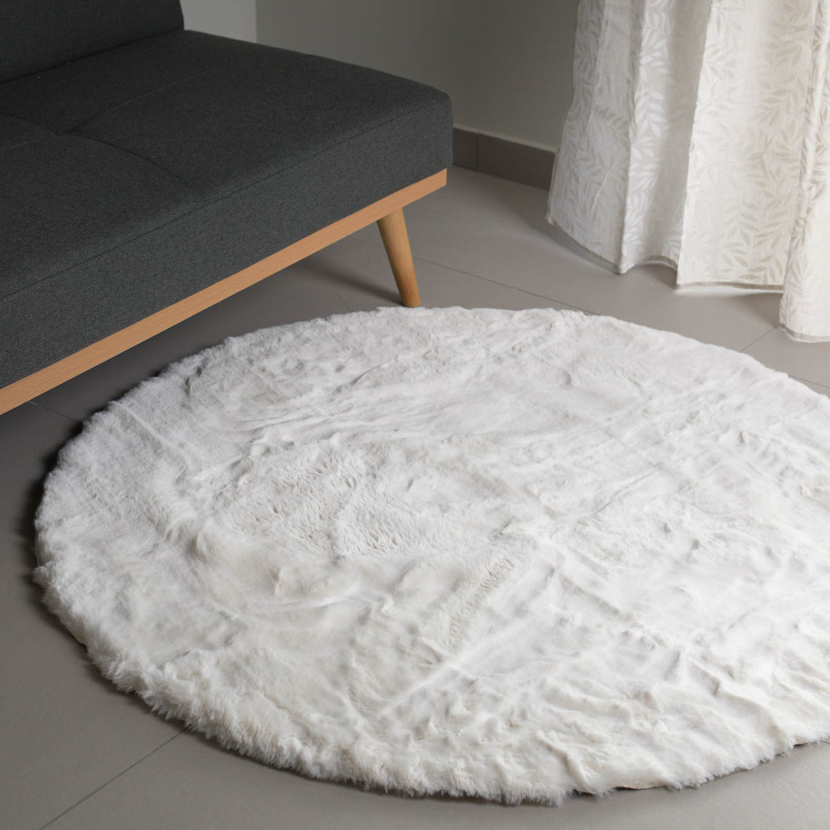 Μηχανοποίητο γούνινο στρογγυλό χαλί από την εταιρεία Ravelia σε εκρού απόχρωση. Κατασκευασμένο από οικολογική γούνα 100% polyester βάρους 1200gsm, προσφέρει εξαιρετικά απαλή υφή και πυκνή ύφανση. Το αφράτο πέλος ύψους 30mm προσφέρει αίσθηση άνεσης σε κάθε βήμα, ενώ το αντιολισθητικό υπόστρωμα από θερμοπλαστικό καουτσούκ (TPR) εξασφαλίζει σταθερότητα και ασφάλεια στη χρήση. Είναι εύκολο στη συντήρηση, καθώς πλένεται και στο πλυντήριο. Ιδανικό για όλους τους χώρους του σπιτιού, θα δώσει μια απαλή, ζεστή πινελιά κατά τους χειμερινούς μήνες.