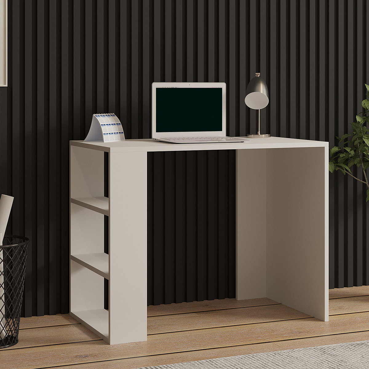 Γραφείο σε λευκό χρώμα με κλασικό σχεδιασμό. Είναι κατασκευασμένο από μοριοσανίδα πάχους 18mm επενδυμένη με μελαμίνη. Διαθέτει βιβλιοθήκη με 3 θέσεις για να τοποθετήσετε βιβλία, κουτιά και διακοσμητικά αντικείμενα. Είναι κατάλληλο και για το παιδικό ή εφηβικό δωμάτιο. Μέγιστο βάρος αντοχής: 25 kg *Το προϊόν έρχεται αμοντάριστο και συναρμολογείται βάσει οδηγιών.*