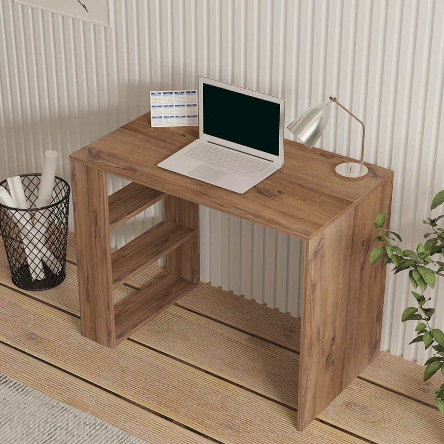 Γραφείο σε απόχρωση πεύκου με κλασικό σχεδιασμό. Είναι κατασκευασμένο από μοριοσανίδα πάχους 18mm επενδυμένη με μελαμίνη. Διαθέτει βιβλιοθήκη με 3 θέσεις για να τοποθετήσετε βιβλία, κουτιά και διακοσμητικά αντικείμενα. Είναι κατάλληλο και για το παιδικό ή εφηβικό δωμάτιο. Μέγιστο βάρος αντοχής: 25 kg *Το προϊόν έρχεται αμοντάριστο και συναρμολογείται βάσει οδηγιών.*