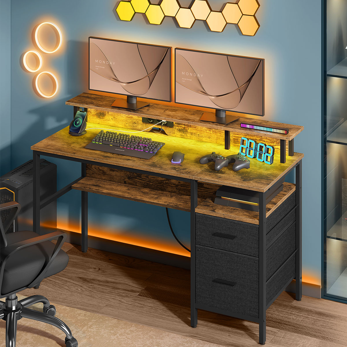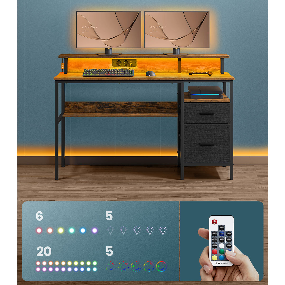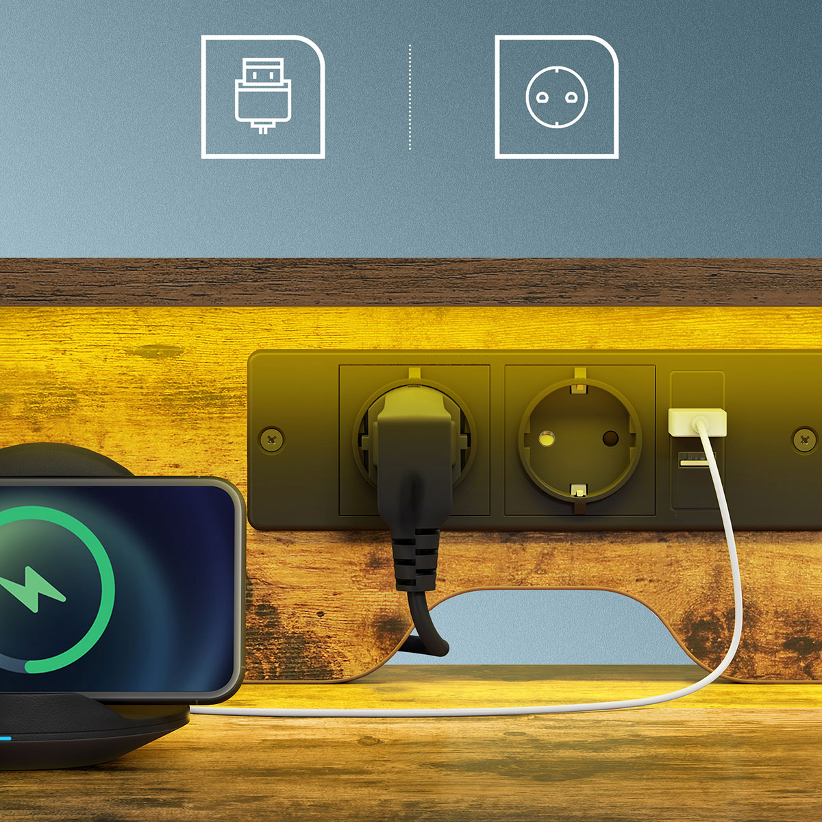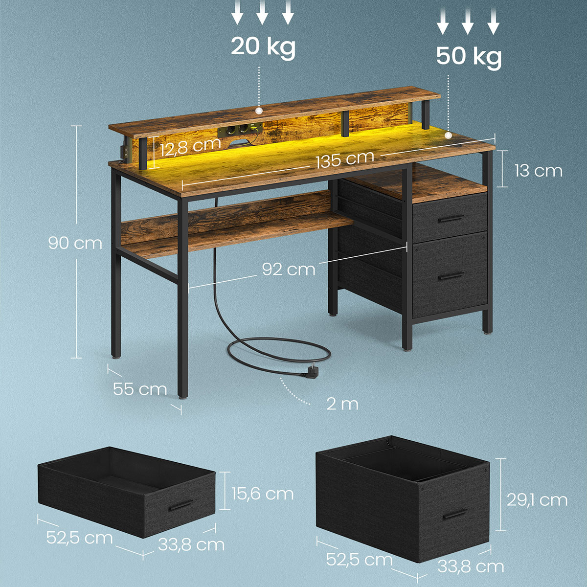 | VasagleΓραφείο Υπολογιστή Με Ενσωματωμένες Πρίζες & Led (135x55x89) Vasagle LWD094K02