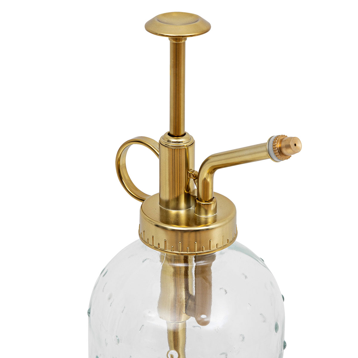 Ψεκαστήρι από διάφανο γυαλί με χρυσό πλαστικό καπάκι. Ένα χρήσιμο εργαλείο για την κουζίνα, το μπάνιο ή τον κήπο ή το μπουντουάρ σας. Απλά βάζετε μέσα το υγρό που θέλετε να ψεκάσετε και πατάτε το επάνω μέρος από το καπάκι. Χωρητικότητα 330 ml.