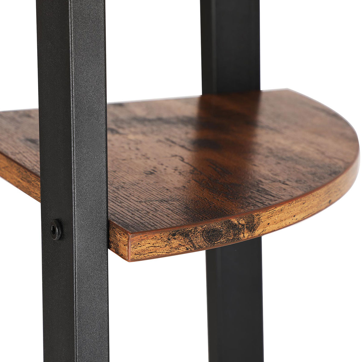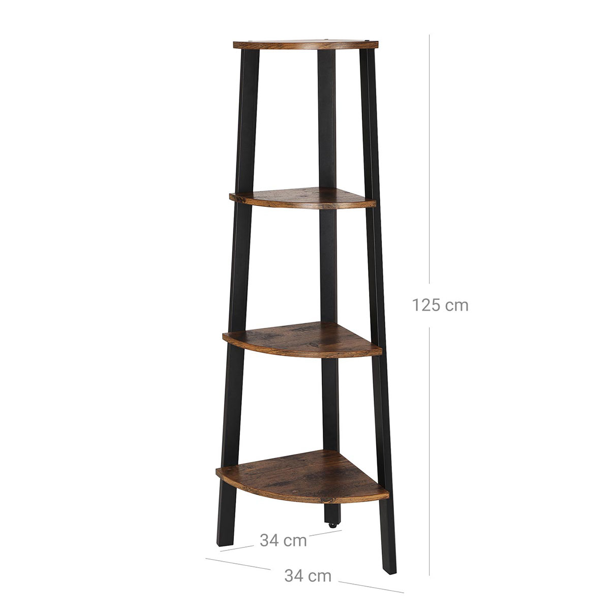 Επιδαπέδια γωνιακή ραφιέρα 4 θέσεων από την εταιρεία Vasagle. Είναι κατασκευασμένη από μοριοσανίδα σε καφέ ρουστίκ χρώμα και μαύρο ματ μεταλλικό πλαίσιο. Ιδανική για να τοποθετηθεί σε οποιοδήποτε μέρος του σπιτιού όπως στο μπάνιο ή στο σαλόνι για να δώσει ένα μοντέρνο ύφος, τακτοποιώντας παράλληλα τα μικροπράγματα σας, τα βιβλία σας ή ό,τι άλλο θέλετε. Διαθέτει εξαρτήματα εγκατάστασης τοίχου για αποφυγή ανατροπής και μέγιστη σταθερότητα. Μέγιστο βάρος αντοχής ανά ράφι 11kg. Καθαρίστε με ένα υγρό πανί και έπειτα σκουπίστε. Αποφύγετε την άμεση έκθεση στον ήλιο και την επαφή με μυτερά και αιχμηρά αντικείμενα όπως μαχαίρια, για να αποφύγετε ζημιές στην επιφάνεια.*Το προϊόν έρχεται αμοντάριστο και συναρμολογείται βάσει οδηγιών.*
