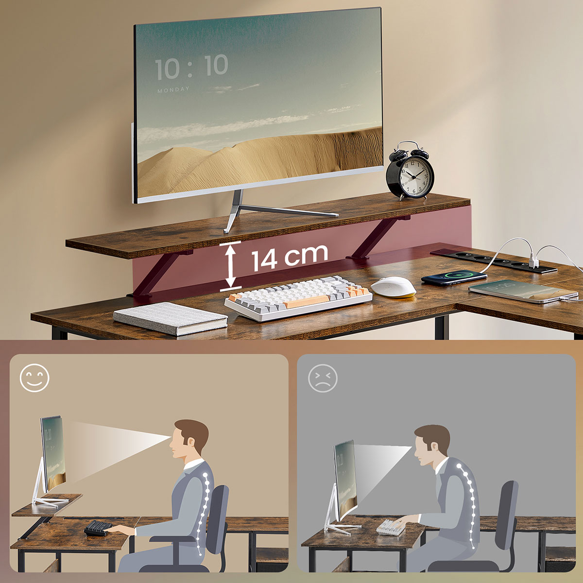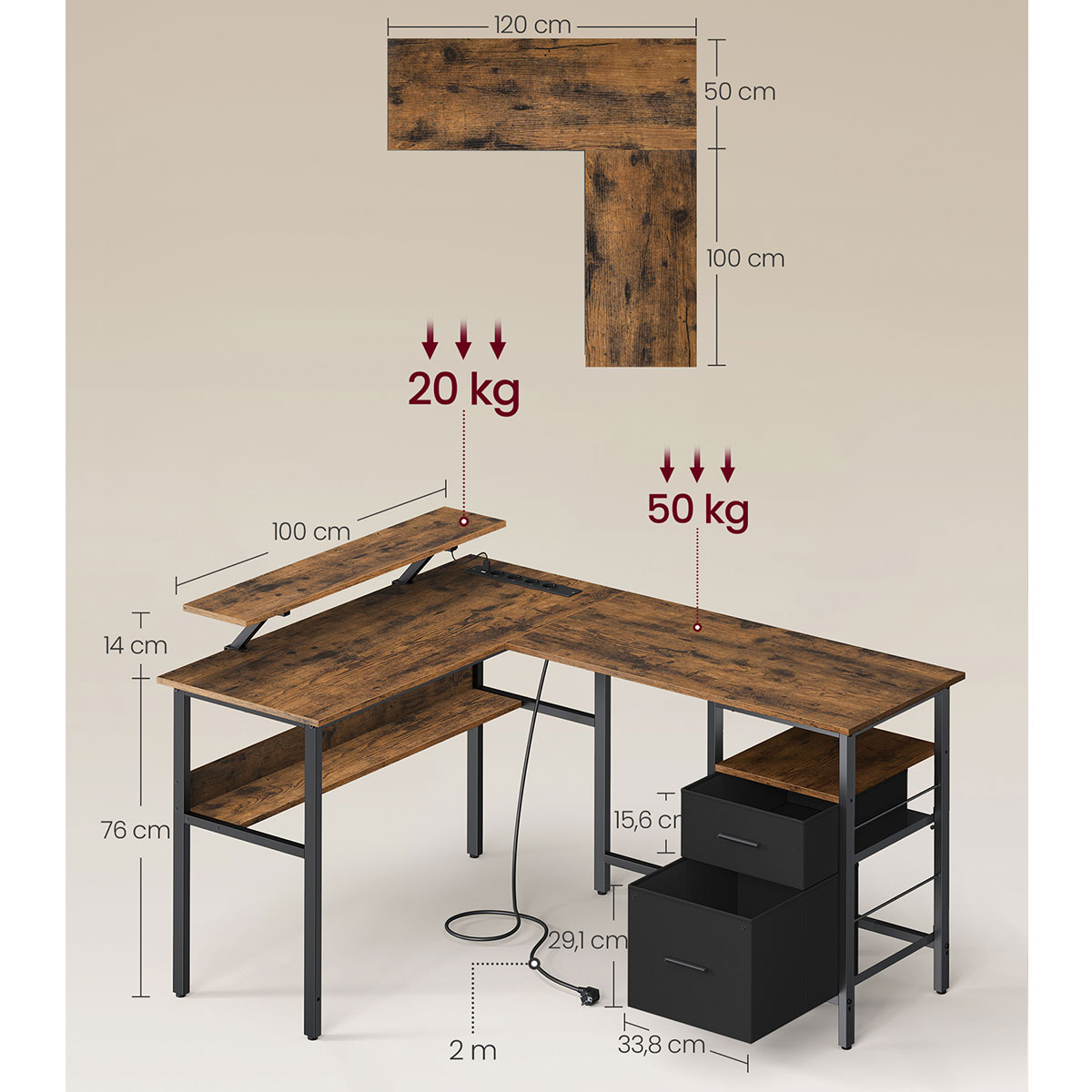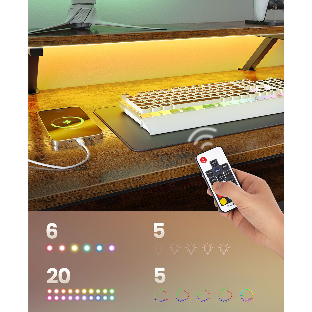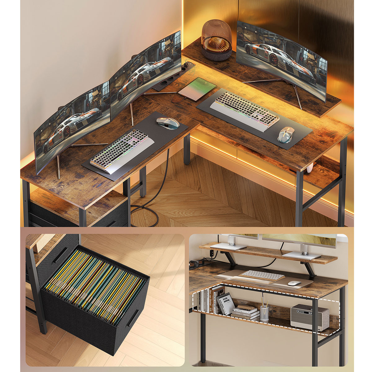 | VasagleΓωνιακό Γραφείο Υπολογιστή Με Ενσωματωμένες Πρίζες - Led & Τηλεχειριστήριο (150x120x89) Vasagle LWD095K01