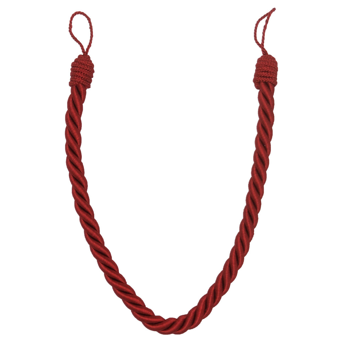 Kορδόνι διακόσμησης σε κόκκινο χρώμα. Είναι υφασμάτινο, κατασκευασμένο από 70% polyester και 30% βαμβάκι. Χρησιμοποιήστε μια δέστρα κουρτίνας για να στολίσετε το χώρο σας.