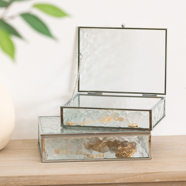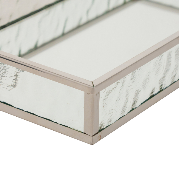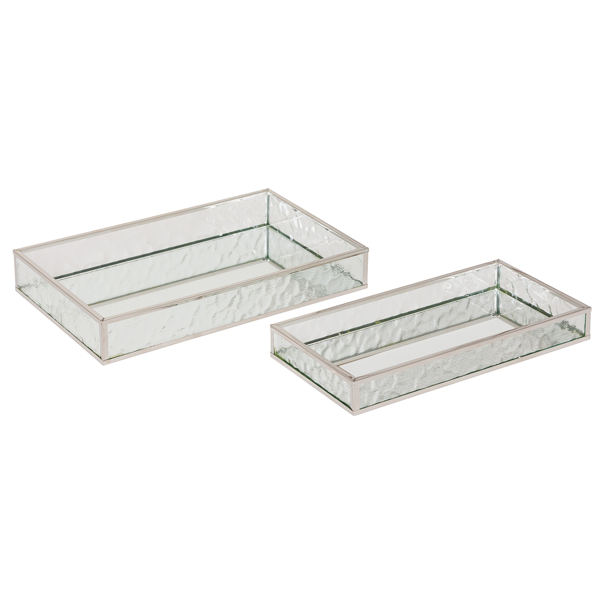 Δίσκοι διακόσμησης σε τετράγωνο σχήμα με μοντέρνο στυλ. Το σετ περιλαμβάνει 2 δίσκους διαφορετικών μεγεθών. Είναι κατασκευασμένοι από θαμπό γυαλί με ασημί μεταλλικές λεπτομέρειες. Ιδανικοί για να τους τοποθετήσετε στο τραπεζάκι του σαλονιού ή την τραπεζαρία και να δημιουργήσετε την διακόσμηση που επιθυμείτε.