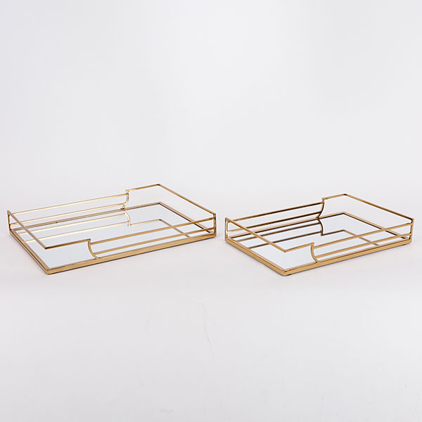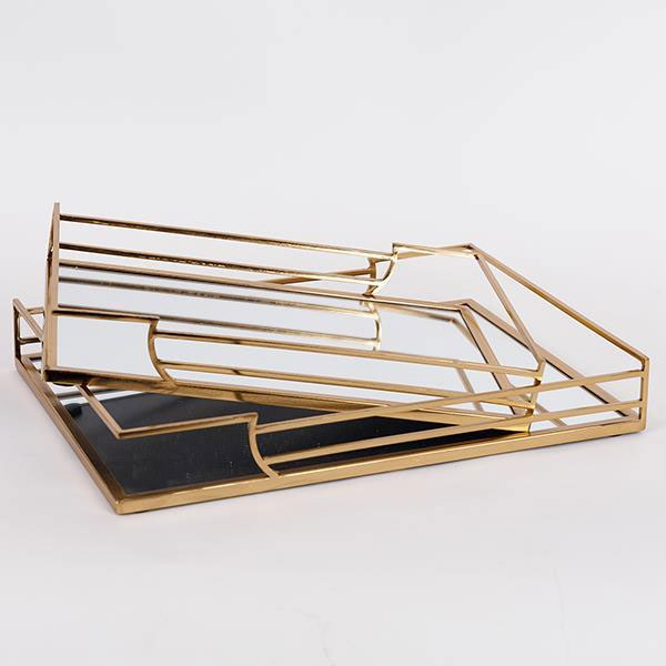 Δίσκοι διακόσμησης σετ από την εταιρεία Estheti σε χρυσό χρώμα με μοντέρνο σχεδιασμό. Ο σκελετός είναι κατασκευασμένος από μεταλλικό υλικό. Η βάση είναι γυάλινος καθρέφτης. Ιδανικοί για την τραπεζαρία ή το σαλόνι, αυτοί οι δίσκοι μπορούν να χρησιμοποιηθούν για να αναδείξουν τη διακόσμηση του χώρου σας, είτε με την τοποθέτηση μικρών αντικειμένων, είτε ως κεντρικό διακοσμητικό στοιχείο.