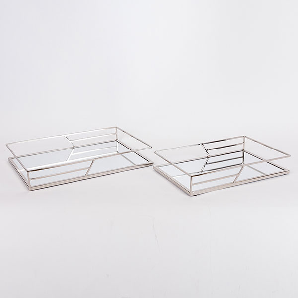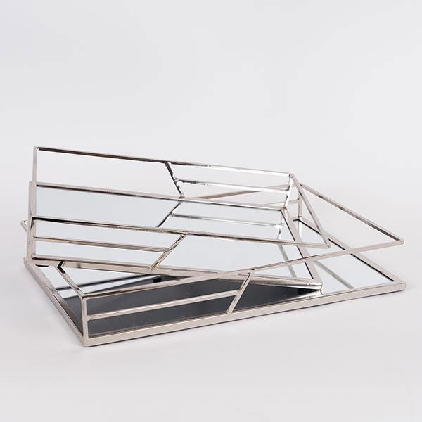 Δίσκοι διακόσμησης σετ από την εταιρεία Estheti σε ασημί χρώμα με μοντέρνο σχεδιασμό. Ο σκελετός είναι κατασκευασμένος από μεταλλικό υλικό. Η βάση είναι γυάλινος καθρέφτης. Ιδανικοί για την τραπεζαρία ή το σαλόνι, αυτοί οι δίσκοι μπορούν να χρησιμοποιηθούν για να αναδείξουν τη διακόσμηση του χώρου σας, είτε με την τοποθέτηση μικρών αντικειμένων, είτε ως κεντρικό διακοσμητικό στοιχείο.