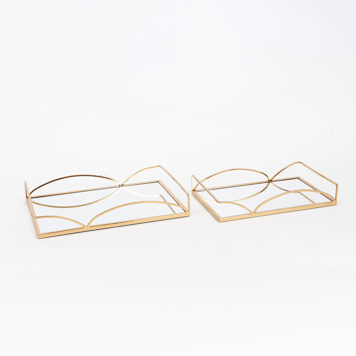 Δίσκοι διακόσμησης σετ από την εταιρεία Estheti σε χρυσό χρώμα με μοντέρνο σχεδιασμό. Ο σκελετός είναι κατασκευασμένος από μεταλλικό υλικό. Η βάση είναι γυάλινος καθρέφτης. Ιδανικοί για την τραπεζαρία ή το σαλόνι, αυτοί οι δίσκοι μπορούν να χρησιμοποιηθούν για να αναδείξουν τη διακόσμηση του χώρου σας, είτε με την τοποθέτηση μικρών αντικειμένων, είτε ως κεντρικό διακοσμητικό στοιχείο.
