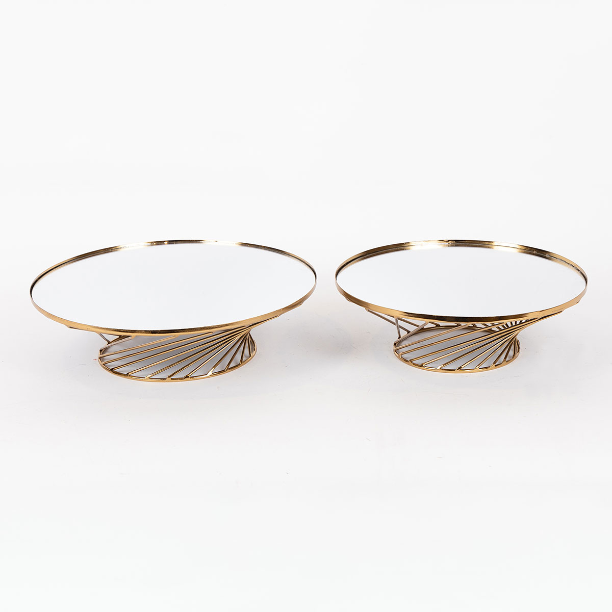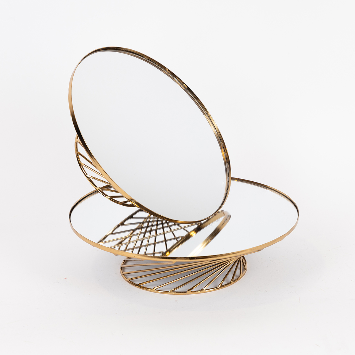 Δίσκοι διακόσμησης σετ από την εταιρεία Estheti σε χρυσό χρώμα με μοντέρνο σχεδιασμό. Ο σκελετός είναι κατασκευασμένος από μεταλλικό υλικό. Η βάση είναι γυάλινος καθρέφτης. Ιδανικοί για την τραπεζαρία ή το σαλόνι, αυτοί οι δίσκοι μπορούν να χρησιμοποιηθούν για να αναδείξουν τη διακόσμηση του χώρου σας, είτε με την τοποθέτηση μικρών αντικειμένων, είτε ως κεντρικό διακοσμητικό στοιχείο.