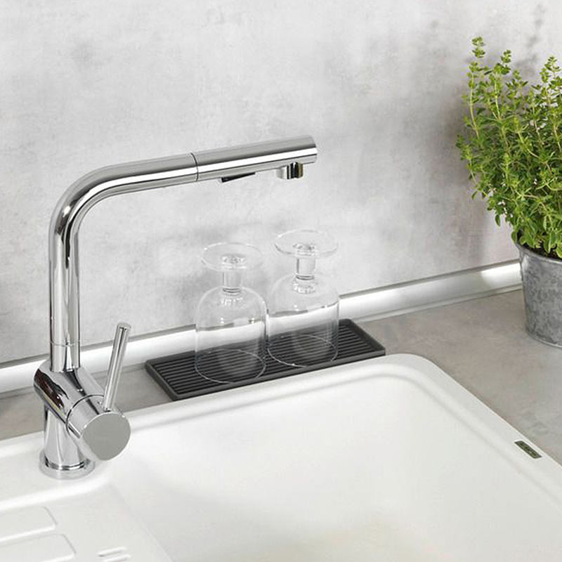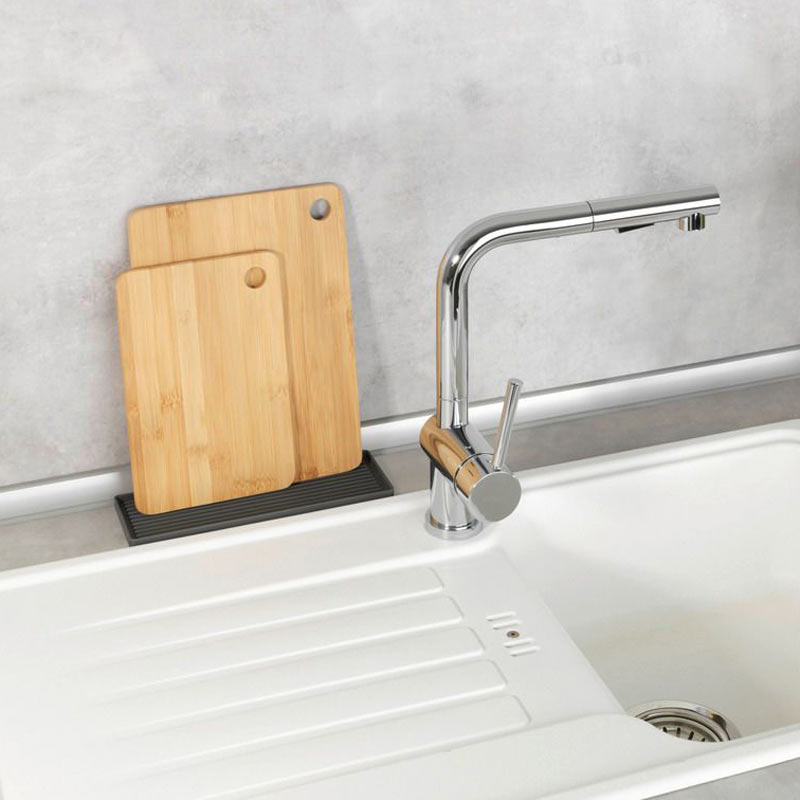 Δίσκος αποστράγγισης της γερμανικής εταιρείας Wenko. Είναι κατασκευασμένος από θερμοπλαστικό λάστιχο (καουτσούκ) σε γκρι απόχρωση που αποτρέπει την ολίσθηση των αντικειμένων. Η δομή του επιτρέπει την αποστράγγιση του νερού με τον βέλτιστο τρόπο ώστε τα σκεύη να μπορούν να στεγνώνουν γρήγορα. Το στενόμακρο μέγεθός του το καθιστά ιδανικό για την αποστράγγιση ποτηριών και φλυτζανιών.