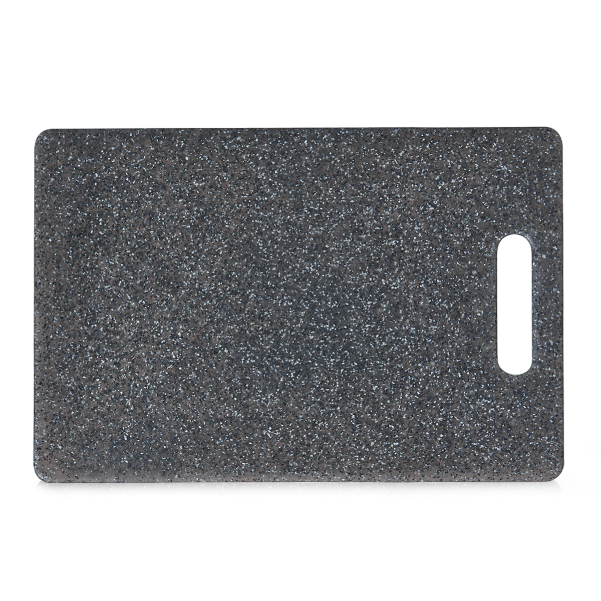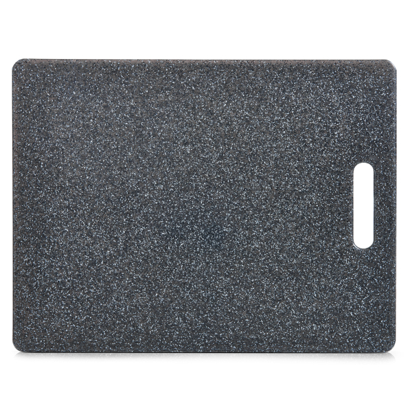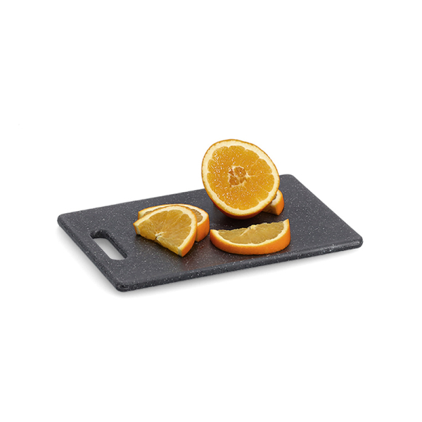 Δίσκος κοπής κατασκευασμένος από ανθεκτικό πλαστικό υλικό σε γκρι χρώμα με εφέ μαρμάρου. Το υλικό του σας επιτρέπει να απομακρύνετε εύκολα τα κομμένα τρόφιμα. Διαθέτει τρύπα για να κρεμιέται. Ιδανικός για φρούτα, λαχανικά, ψάρια και κρέας, κλπ.