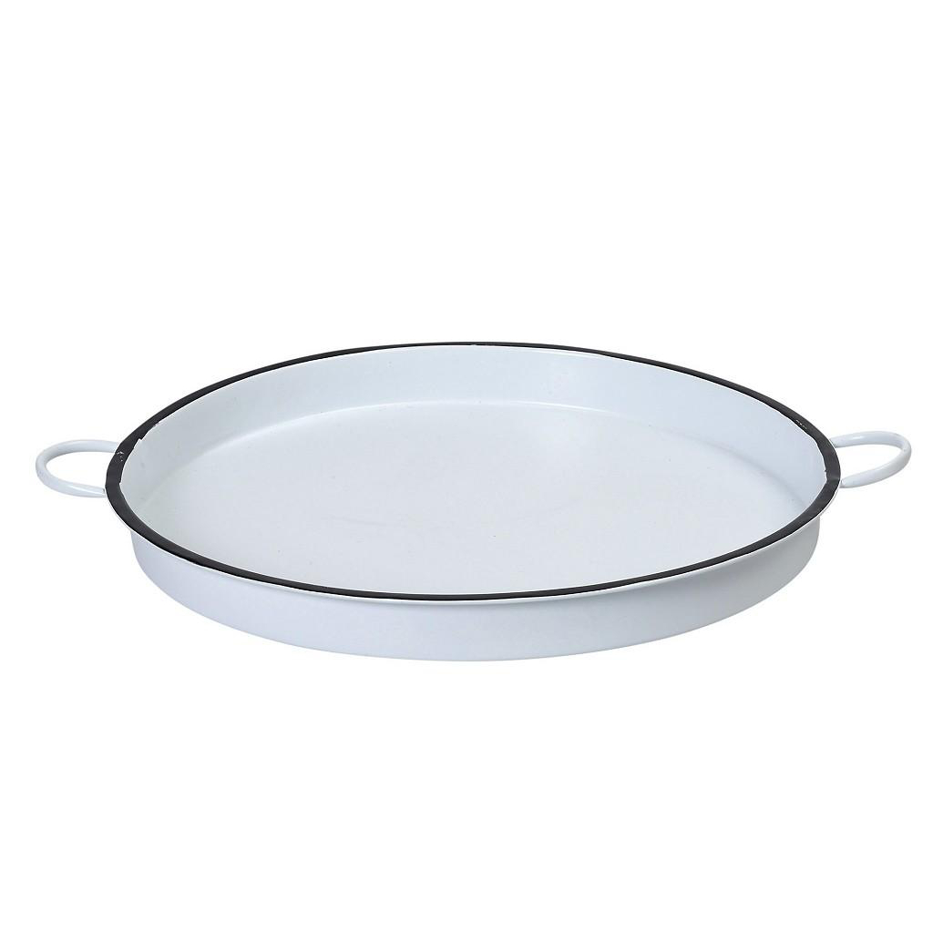 Δίσκος σερβιρίσματος σε στρογγυλό σχήμα της εταιρείας Espiel. Έχει λευκό χρώμα με μαύρες λεπτομέρειες και μοντέρνο σχεδιασμό. Είναι κατασκευασμένος από μεταλλικό υλικό με επίστρωση βαφής και διαθέτει πρακτικές λαβές. Ιδανικός για να σερβίρετε τους καλεσμένους σας ή για να τον συνδυάσετε με άλλα στοιχεία και να δημιουργήσετε μια μοναδική διακόσμηση.
