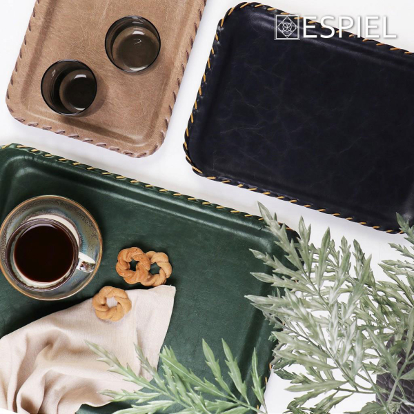 Δίσκος σερβιρίσματος από την εταιρεία Tria By Espiel σε μπλε χρώμα με χρυσές λεπτομέρειες και μοντέρνο σχέδιο. Είναι κατασκευασμένος από πλαστικό υλικό PVC. Προσφέρετε στους καλεσμένους σας τον καφέ ή το ποτό τους και εντυπωσιάστε τους.