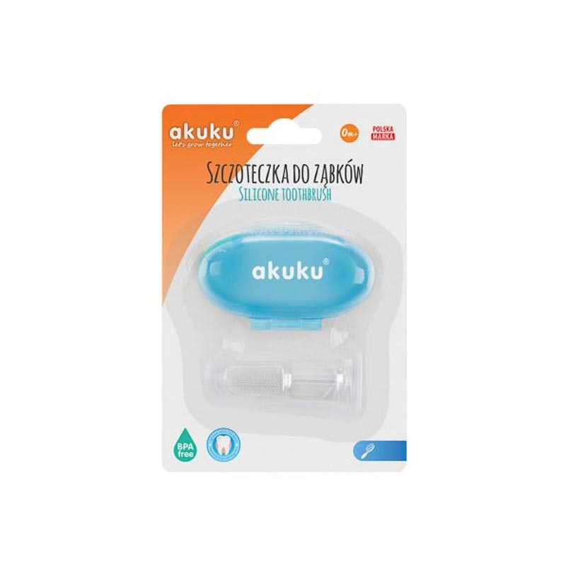 Δακτυλική οδοντόβουρτσα για τα ούλα και τα πρώτα σκασίματα των δοντιών του μικρού σας από την εταιρία Akuku. Είναι σε διάφανο-γαλάζιο χρώμα και κατασκευασμένη από χειρουργική σιλικόνη χωρίς BPA ή φθαλικές ουσίες. Είναι μαλακή και ιδανική για να καθαρίζετε το στοματάκι του μωρού σας. Απλώς περάστε την οδοντόβουρτσα στο δάκτυλό σας και κάντε απαλό μασάζ στα ούλα του μωρού. Έρχεται με θήκη για να μπορείτε να την αποθηκεύσετε εύκολα και να την έχετε μαζί σας παντού.