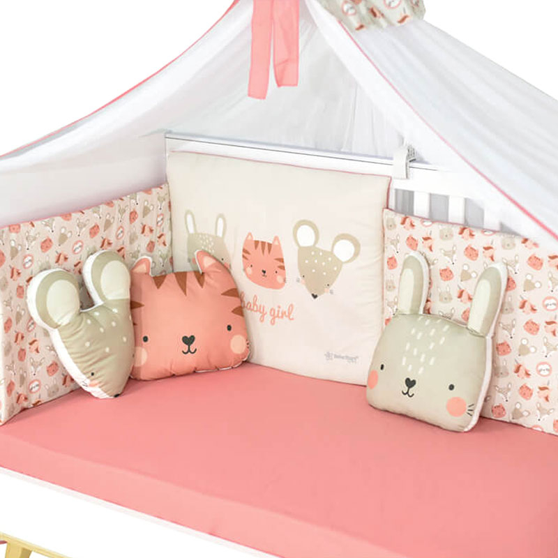 Διακοσμητικά μαξιλάρια σετ για το παιδικό ή το βρεφικό δωμάτιο από την εταιρία Bebe Stars.Το σετ περιλαμβάνει 1 μαξιλάρι με γέμιση σε σχήμα κουνελάκι, 1 μαξιλάρι με γέμιση σε σχήμα γατάκι και 1 μαξιλάρι με γέμιση σε σχήμα ποντικάκι. Είναι φτιαγμένα από βαμβακερό ύφασμα και υποαλλεργική, μαλακή γέμιση που τα καθιστά μαλακά και αφράτα. Η εσωτερική γέμιση δεν αφαιρείται. Με τα μαξιλαράκια μπορείτε να διακοσμήσετε τόσο το κρεβατάκι του μικρού σας, όσο και να δημιουργήσετε μία υπέροχη γωνιά παιχνιδιού στο παιδικό δωμάτιο. Συνδυάστε τα με τα υπόλοιπα προϊόντα της ίδιας συλλογής για ένα ολοκληρωμένο αποτέλεσμα.