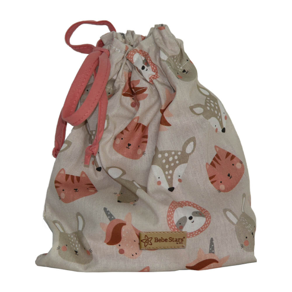 Διακοσμητικά σημαιάκια της εταιρείας Bebe Stars σε εκρού-κοραλί χρώμα και σχέδιο ζωάκια. Κατασκευασμένα από διπλό βαμβακερό ύφασμα με εσωτερική ραφή ώστε να είναι ανθεκτικά και ραμμένα σε κορδέλα. Η στιβαρή τους κατασκευή αποτρέπει την φθορά και το ξέφτισμα. Συσκευασία: Υφασμάτινο πουγκί.