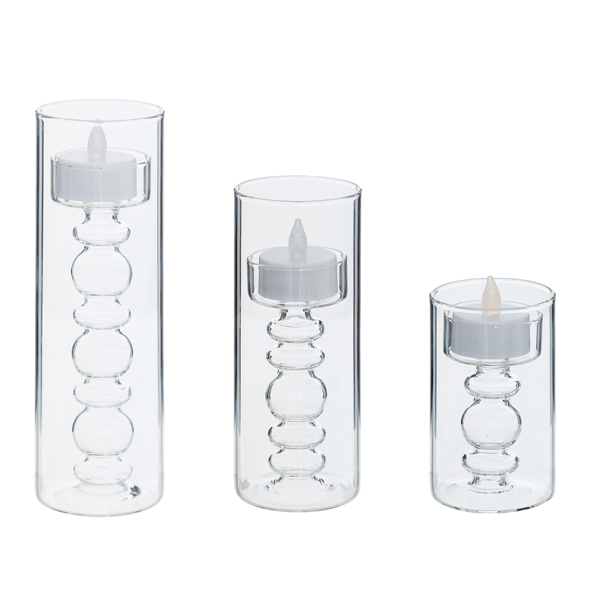 Κεριά ρεσώ με Led κατασκευασμένα από πλαστικό υλικό σε λευκό χρώμα και τοποθετημένα σε διάφανα γυάλινα κηροπήγια. Το σετ περιλαμβάνει 3 ρεσώ με θερμό λευκό φωτισμό που προσομοιάζει το φως κεριού. Διαθέτουν από 1 ενσωματωμένη πλακέτα Led και λειτουργούν με μπαταρίες CR2032 / CR2034 οι οποίες περιλαμβάνονται. Έχουν βαθμό στεγανότητας IP20 που τα καθιστά κατάλληλα για εσωτερικούς χώρους. Ιδανικά για να τοποθετήσετε σε όλα τα μέρη του σπιτιού και να λειτουργούν για ώρες χωρίς το άγχος του αληθινού κεριού.
